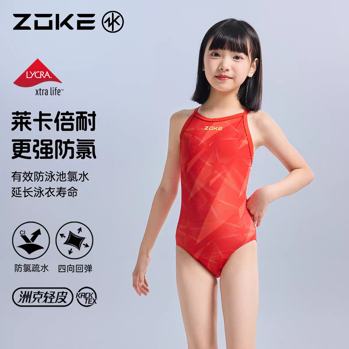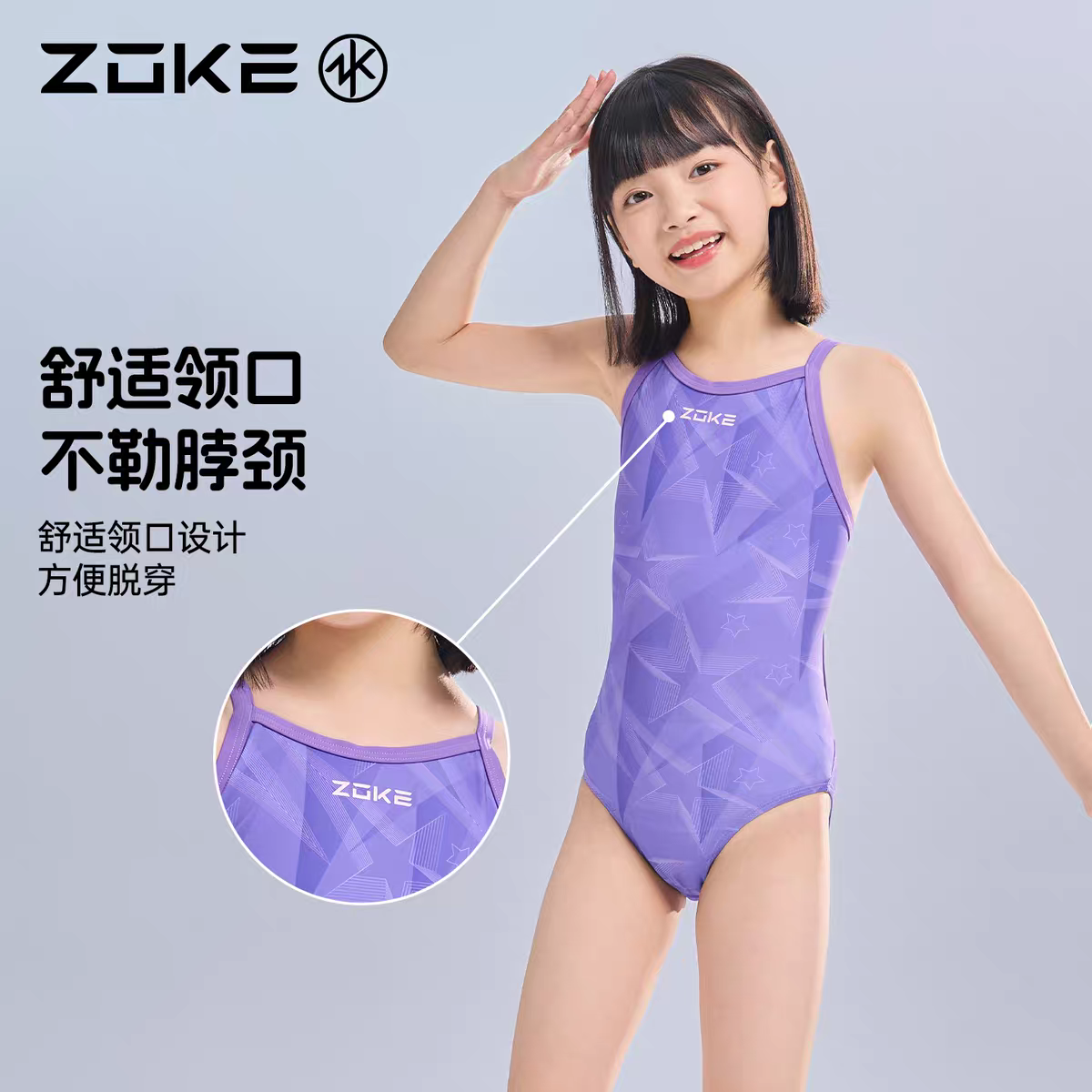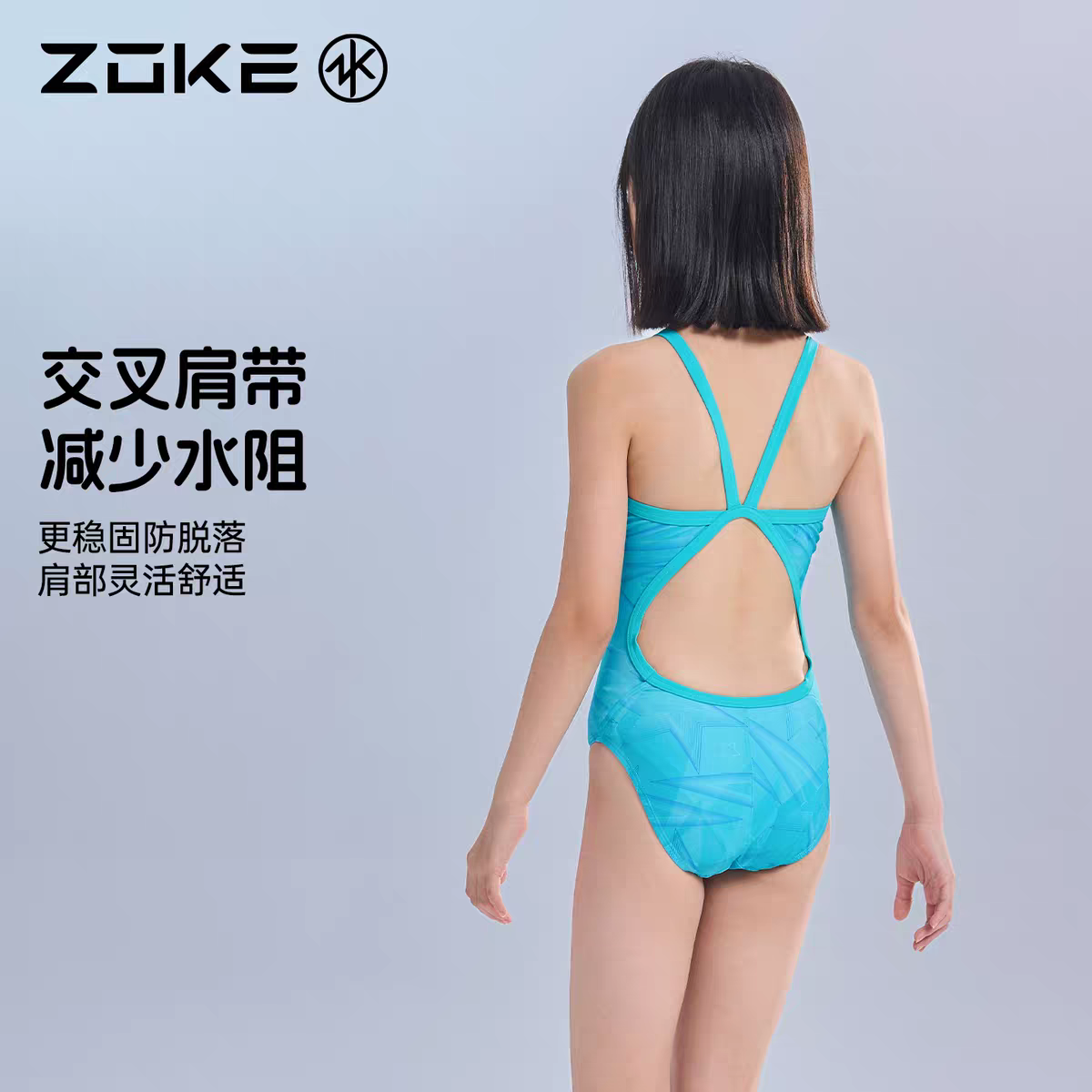 洲克儿童泳衣三角连体专业游泳训练比赛泳衣zoke速干防氯女孩泳衣