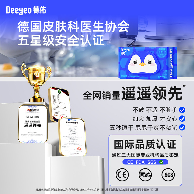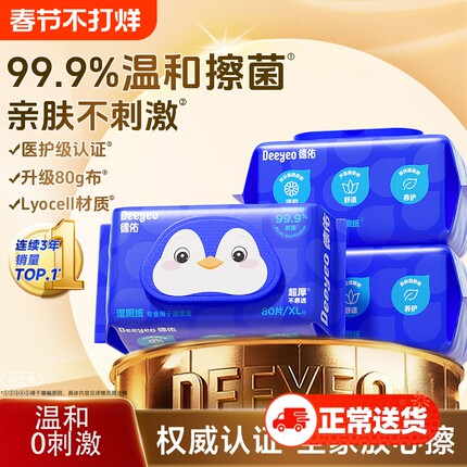 德佑企鹅湿厕纸80抽实惠装男女士专用厕所湿纸巾年货节清洁马桶