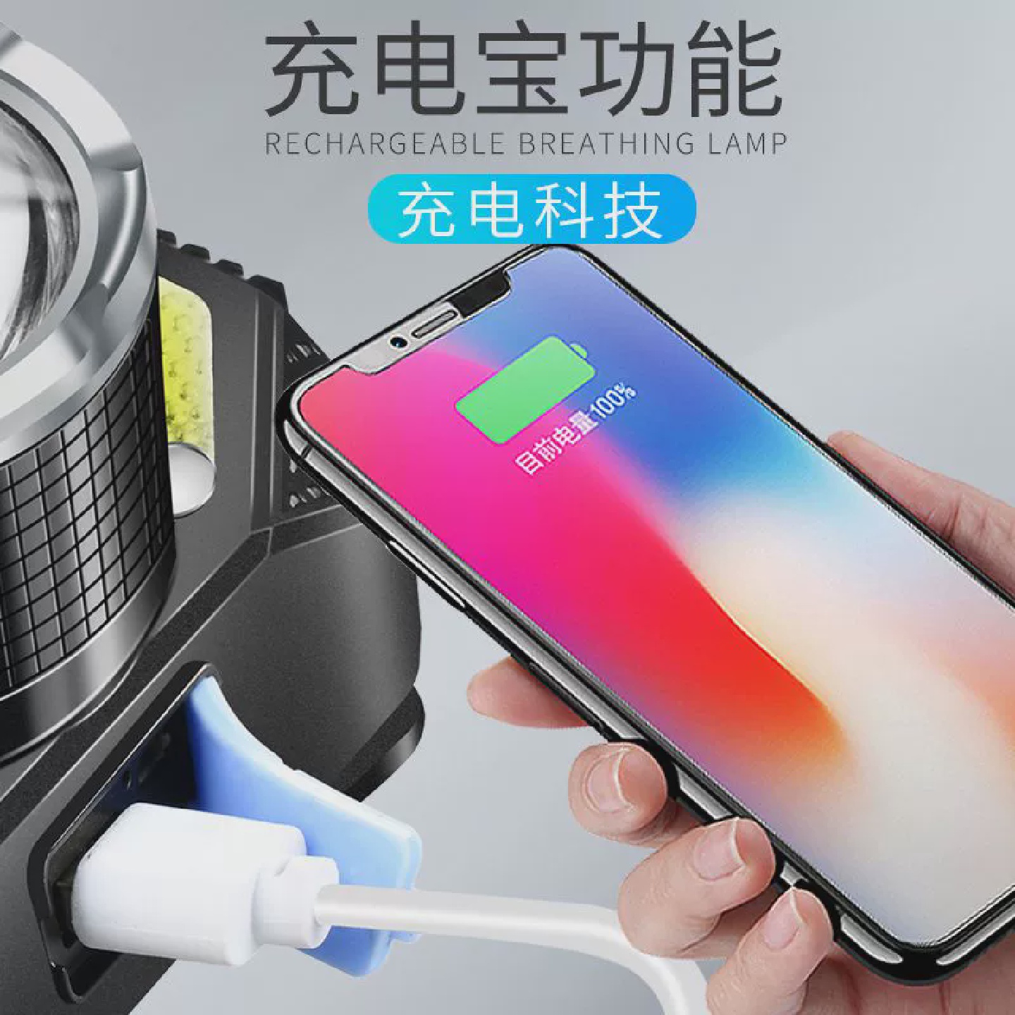 led感应头灯强光充电超亮头戴式电筒3000米防水矿灯夜钓鱼灯家用