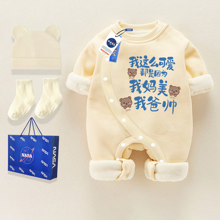 冬季婴儿侧开加绒连体衣纯棉a类