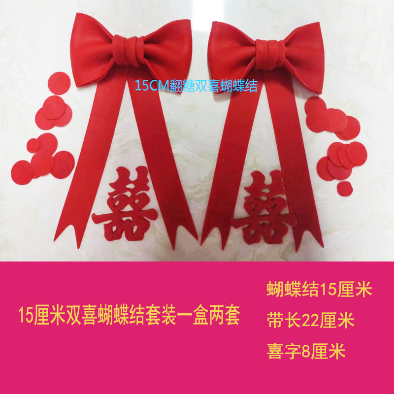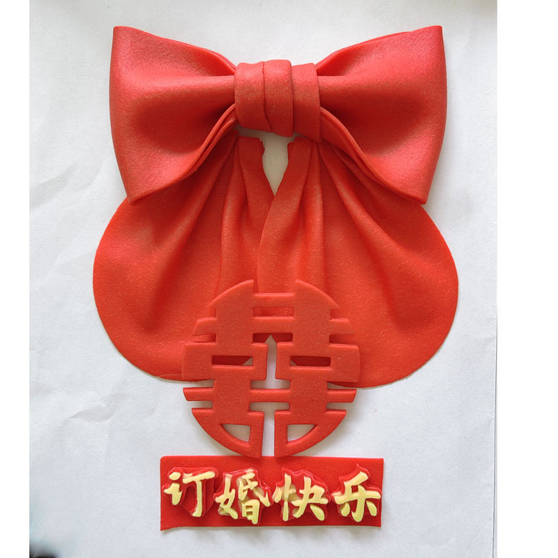蛋糕装饰巧克力插片翻糖蝴蝶结喜字红双喜结婚蛋糕装饰订婚快乐