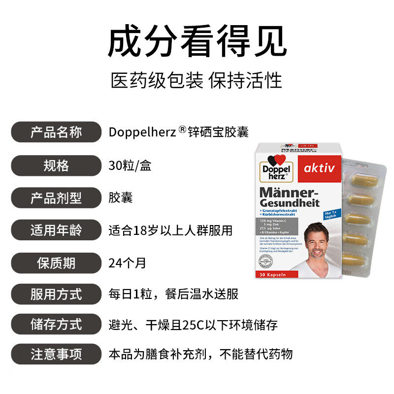 【自营】3盒德国双心男性锌硒宝片复合维生素南瓜籽石榴锌硒胶囊