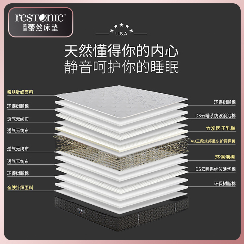 美国蕾丝奥斯汀竹炭乳胶防螨床垫1.8m弹簧床垫护脊垫家用软硬适中