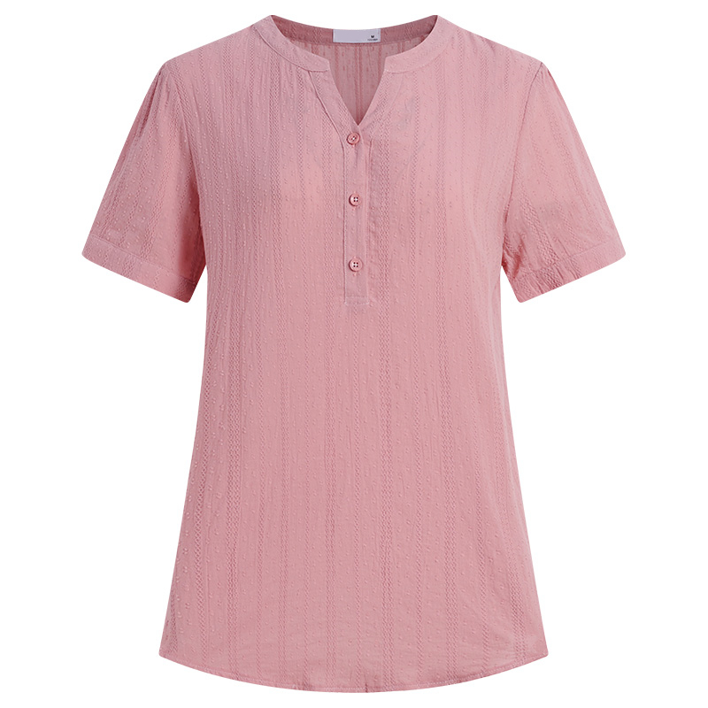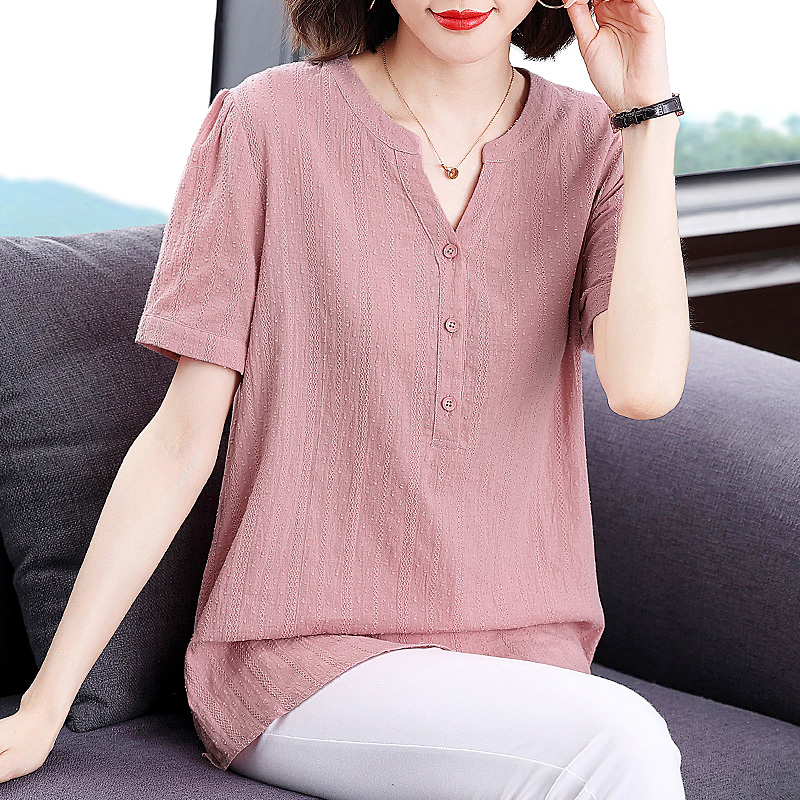 纯棉蓝色衬衫女装夏季新款洋气女士短袖t恤大码胖mm宽松v领上衣服
