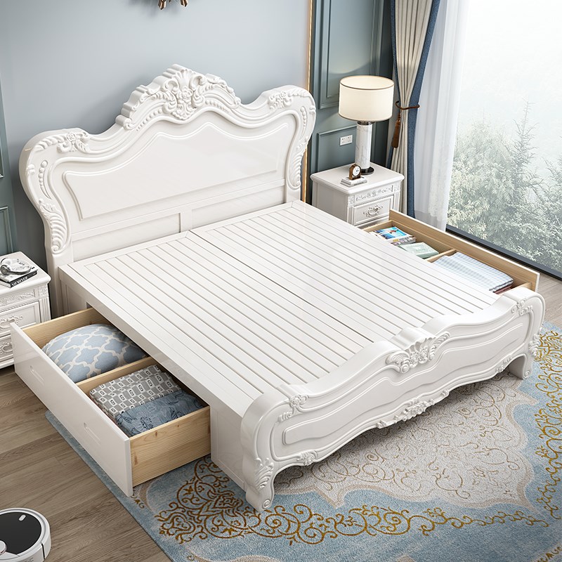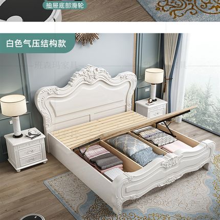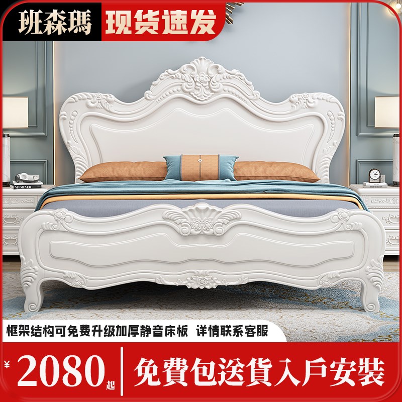 白色欧式实木床1.8米现代雕花高箱储物双人床公主床主卧婚床