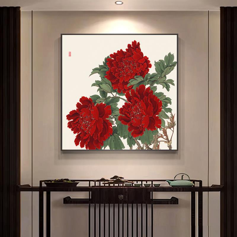 牡丹花挂画国画花开富贵客厅玄关画卧室背景墙壁画中式餐厅装饰画