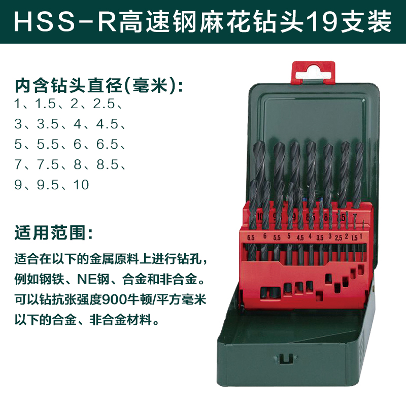 麦太保钻头套装高速钢含钴合金不锈钢麻花钻头电钻配件19支25支