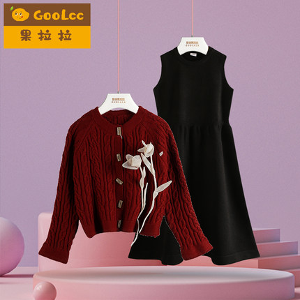 法式儿童连衣裙套装裙子女童2026新年红色背心裙两件套拜年服秋冬