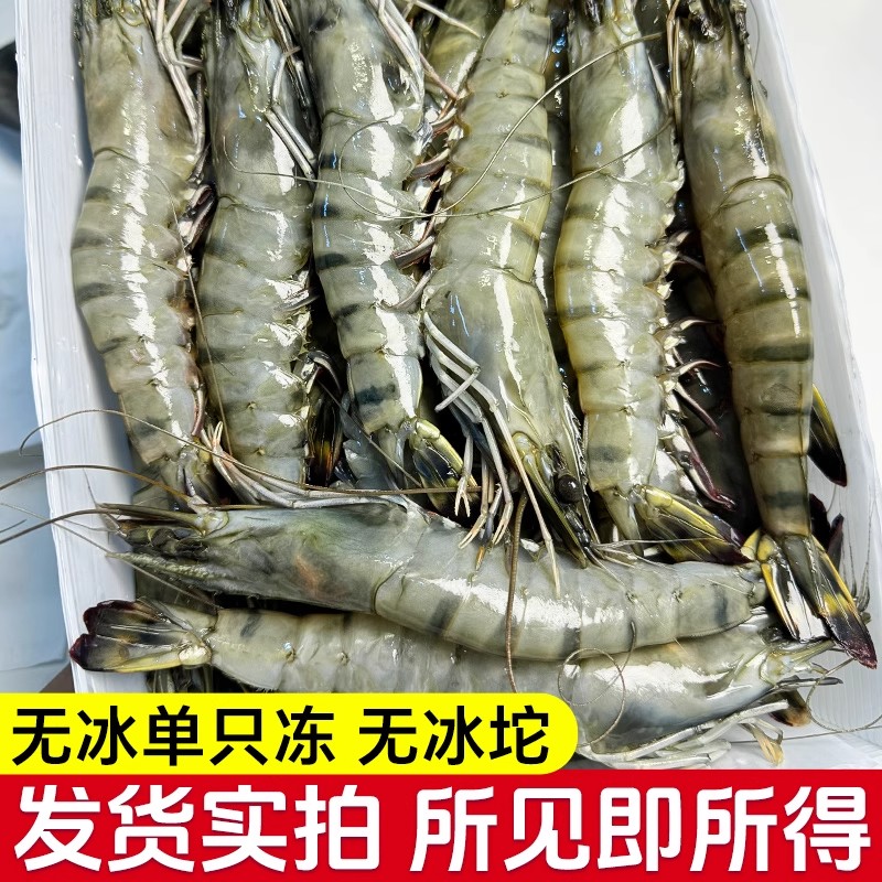 黑虎虾鲜活超大虾老虎虾鲜冻特大无冰衣对虾基围虾海虾竹斑九节虾