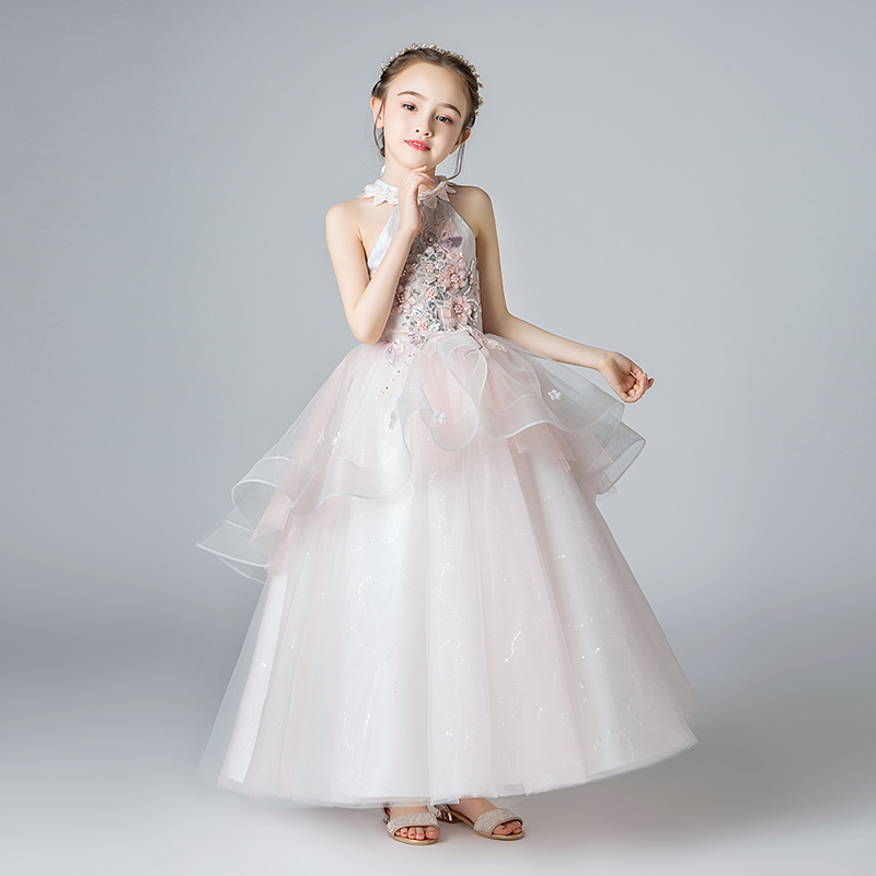 小花童公主裙女童生m日洋派模特走秀礼服女孩主持人儿童钢琴演出