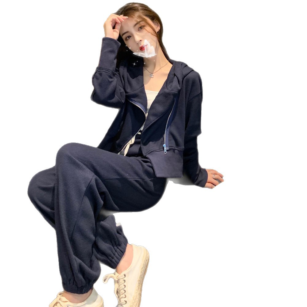 藏蓝色2025年休闲套装女春秋季学生韩版宽松洋气时尚卫衣两件套