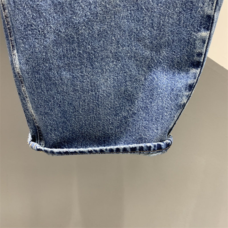 做旧水洗设计牛仔弯刀裤女