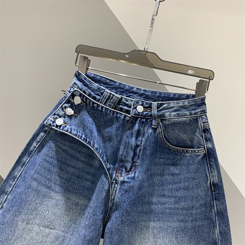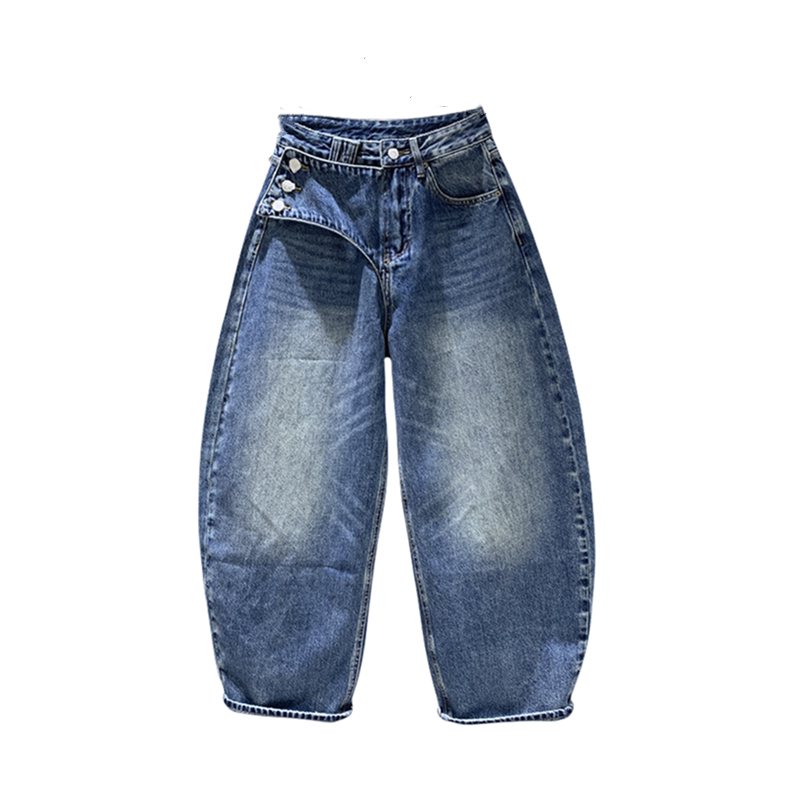 2026年春季新款做旧水洗设计牛仔弯刀裤女百搭宽松阔腿香蕉哈伦裤