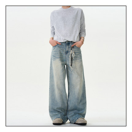 MADWITCH美式复古cleanfit水洗牛仔裤男宽松休闲百搭做旧直筒裤子