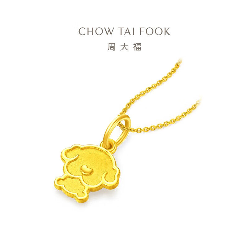 周大福狗年生肖爱心小狗足金黄金吊坠计价EOF691