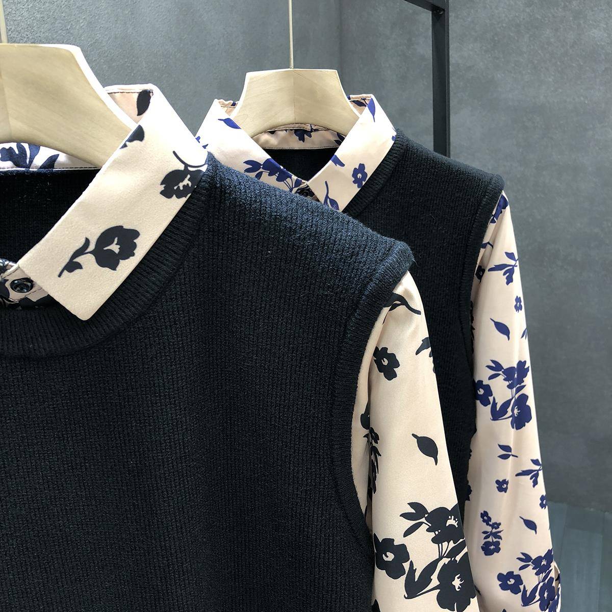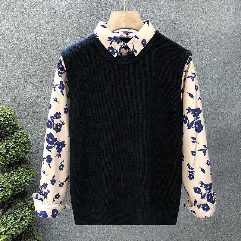 流行花色假两件毛衣男衬衫领袖针织衫2025秋冬季新款男士上1010r