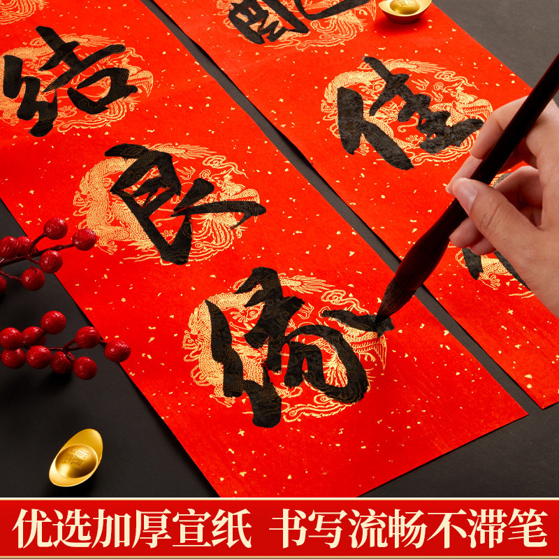 加厚万年红长卷对联纸2026年马年新款红纸专用纸红色宣纸练习春联纸自写空白手写书法作品纸批发洒金卷轴大张