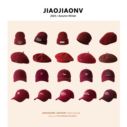 安哥拉红色帽子2024秋冬毛线帽气质贝雷帽街头棒球帽渔夫帽女生