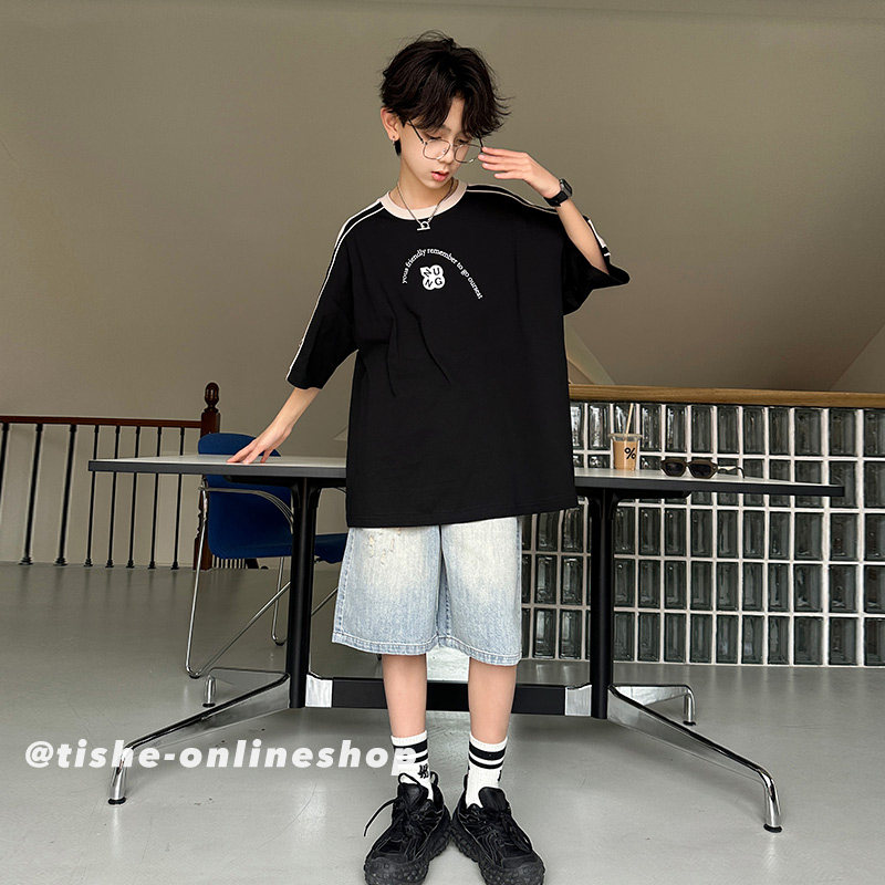 男童短袖T恤夏季薄款中大童体恤五分袖上衣大童男装宽松炸街夏装8