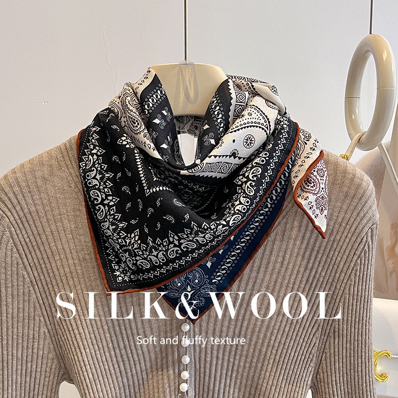 真丝羊毛小方巾丝巾女士2025新款秋季冬轻奢高级感羊绒围巾薄款70