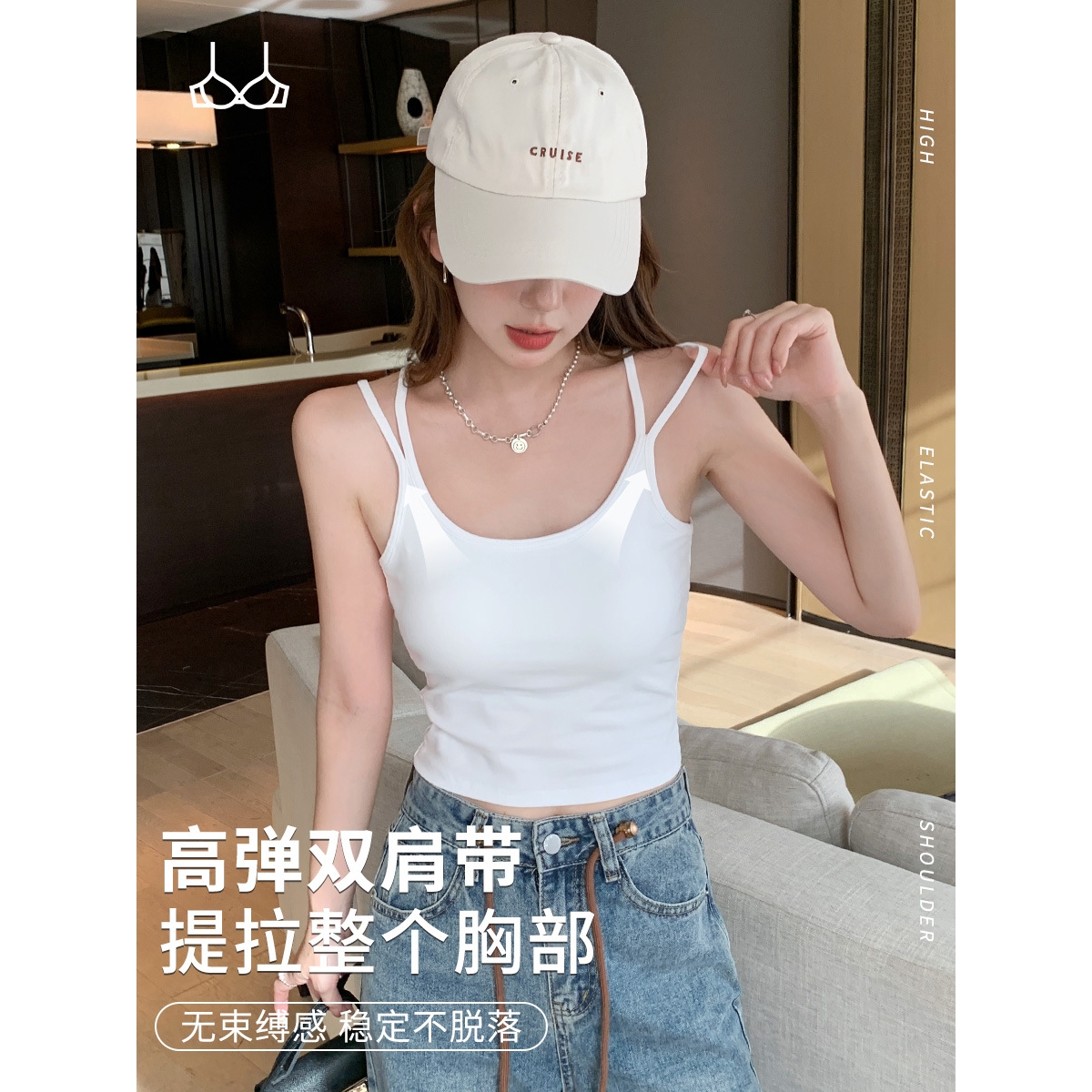 罗丽丝吊带背心女夏季2025新款外穿内搭纯棉带胸垫一体式打底衫上