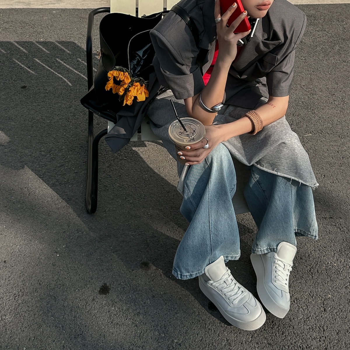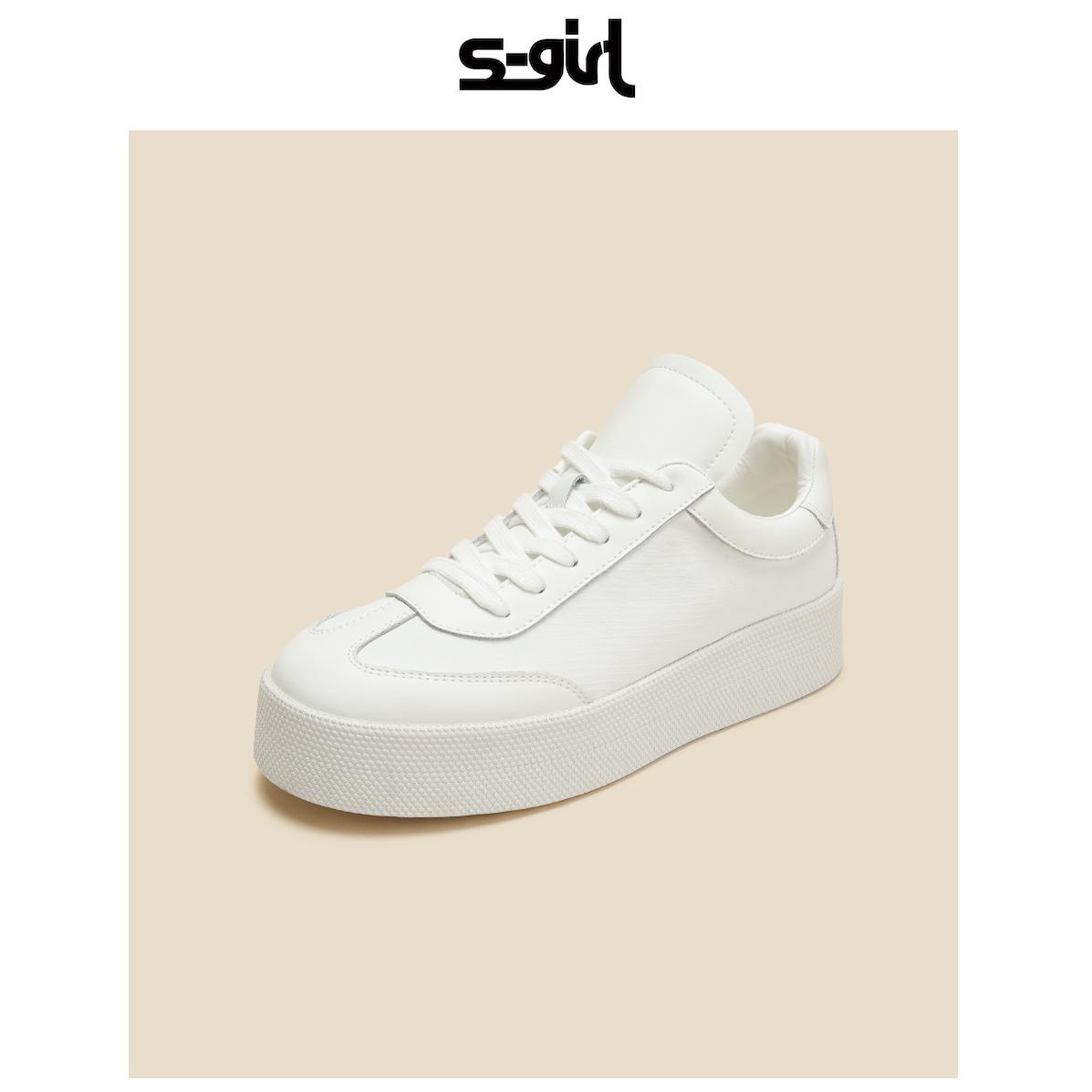 SGIRL TWTW厚底松糕底小白鞋韩版百搭增高德训鞋春季新款休闲板鞋