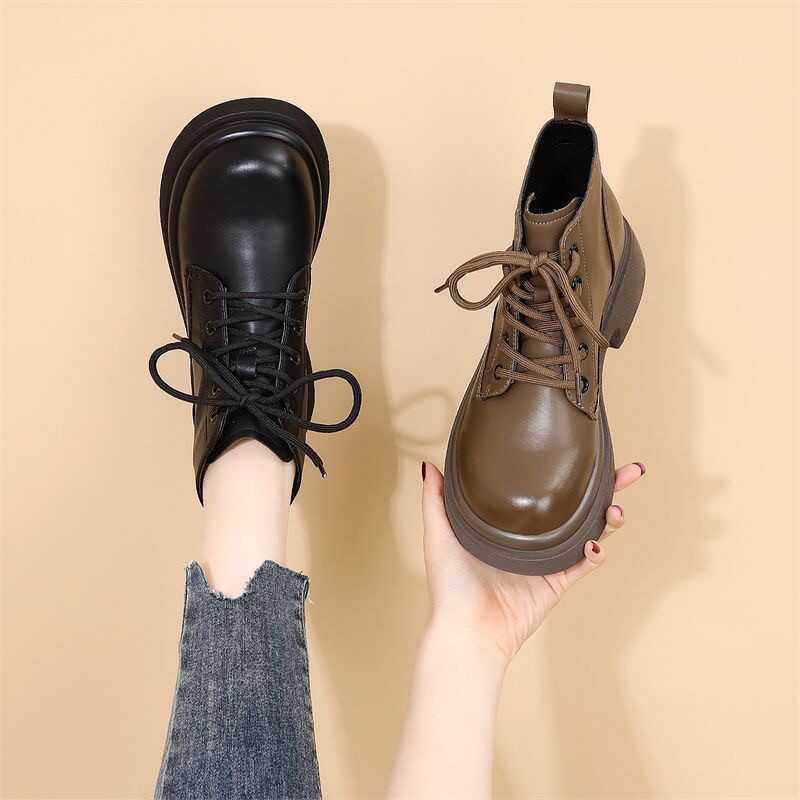 真皮厚底马丁靴女冬季加绒小短靴