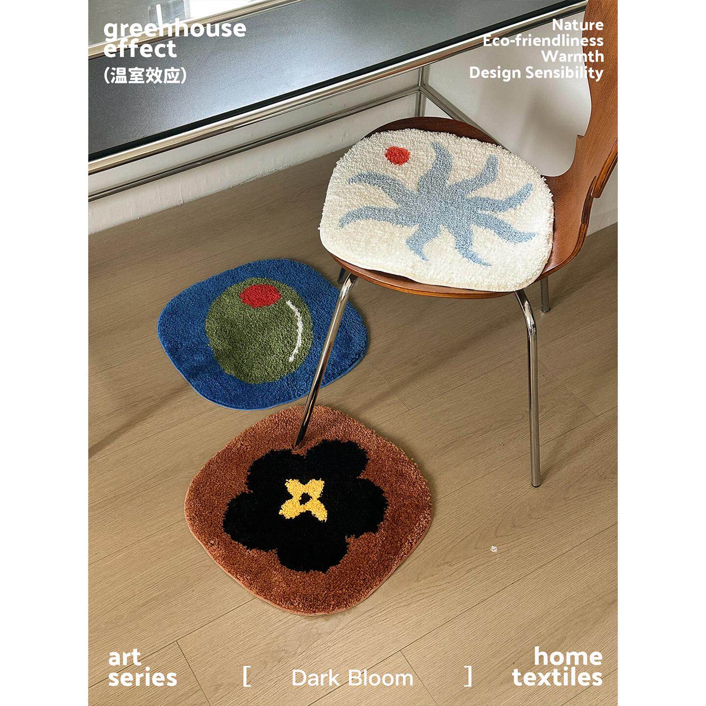 ins创意手绘椅垫小地毯加厚床边毯簇绒地垫卧室垫坐垫吸水防滑垫