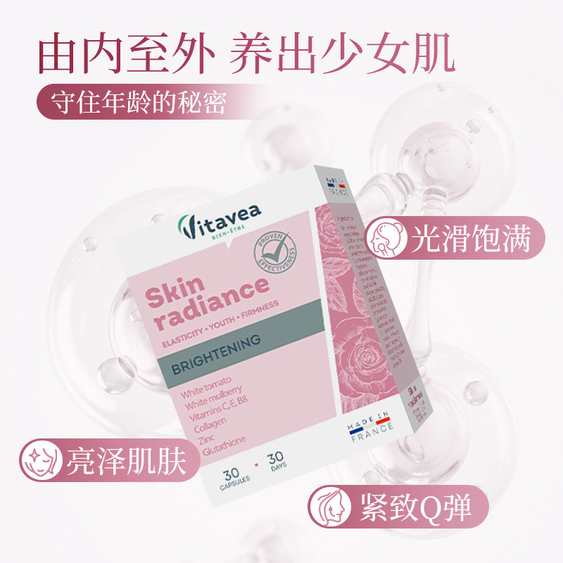 法国vitavea美白丸胶原蛋白谷胱甘肽葡萄籽番茄淡斑亮白美白内服
