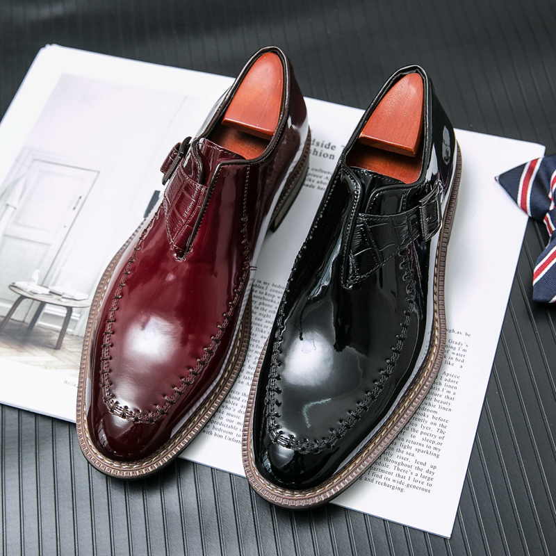 韩版皮鞋男尖头英伦潮流漆皮男鞋亮皮商务正装皮鞋西装透气结婚鞋