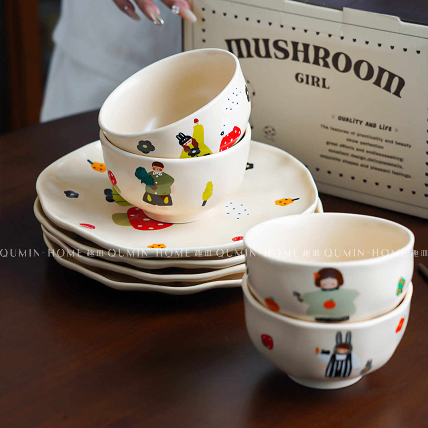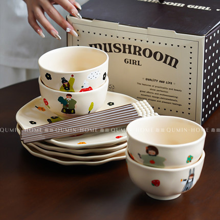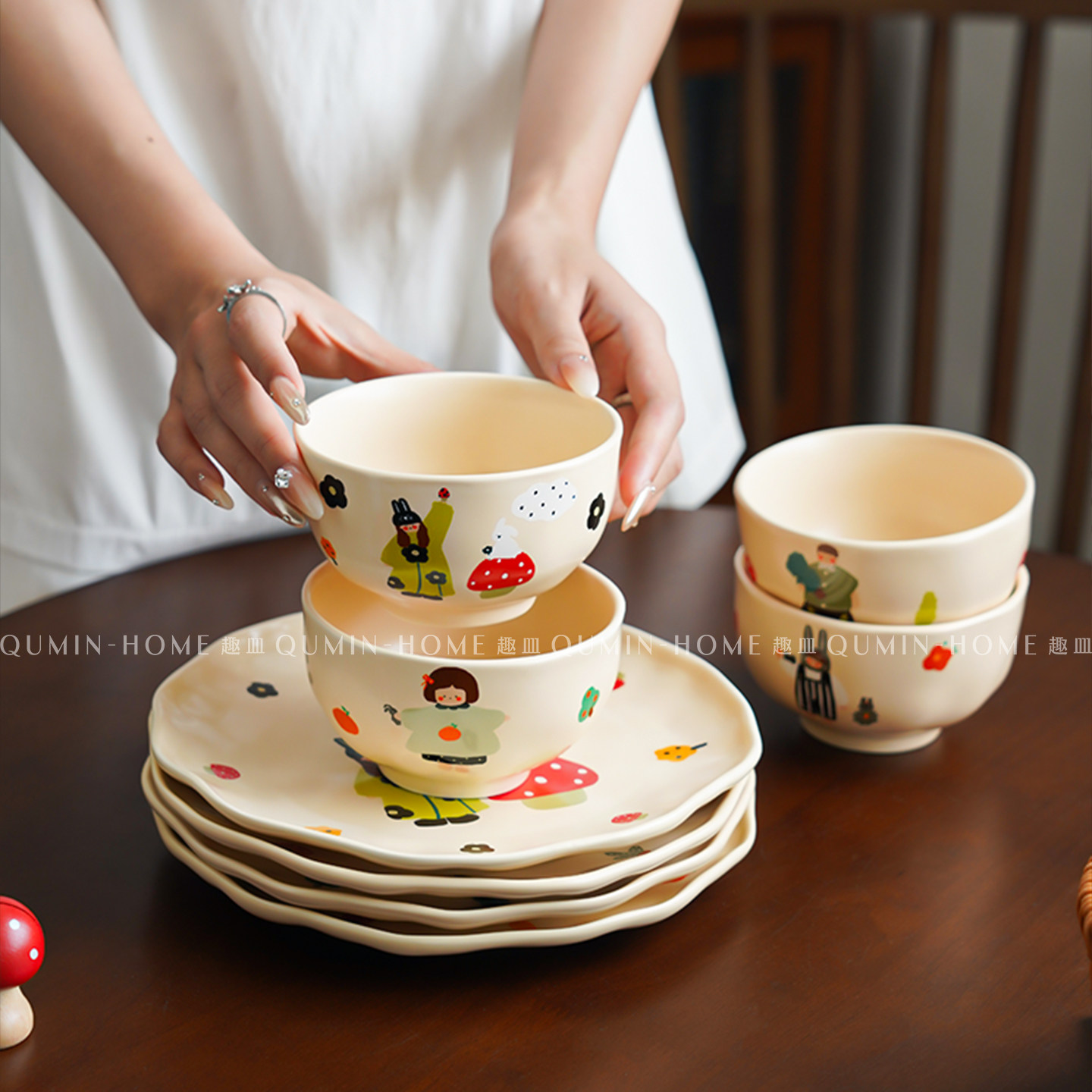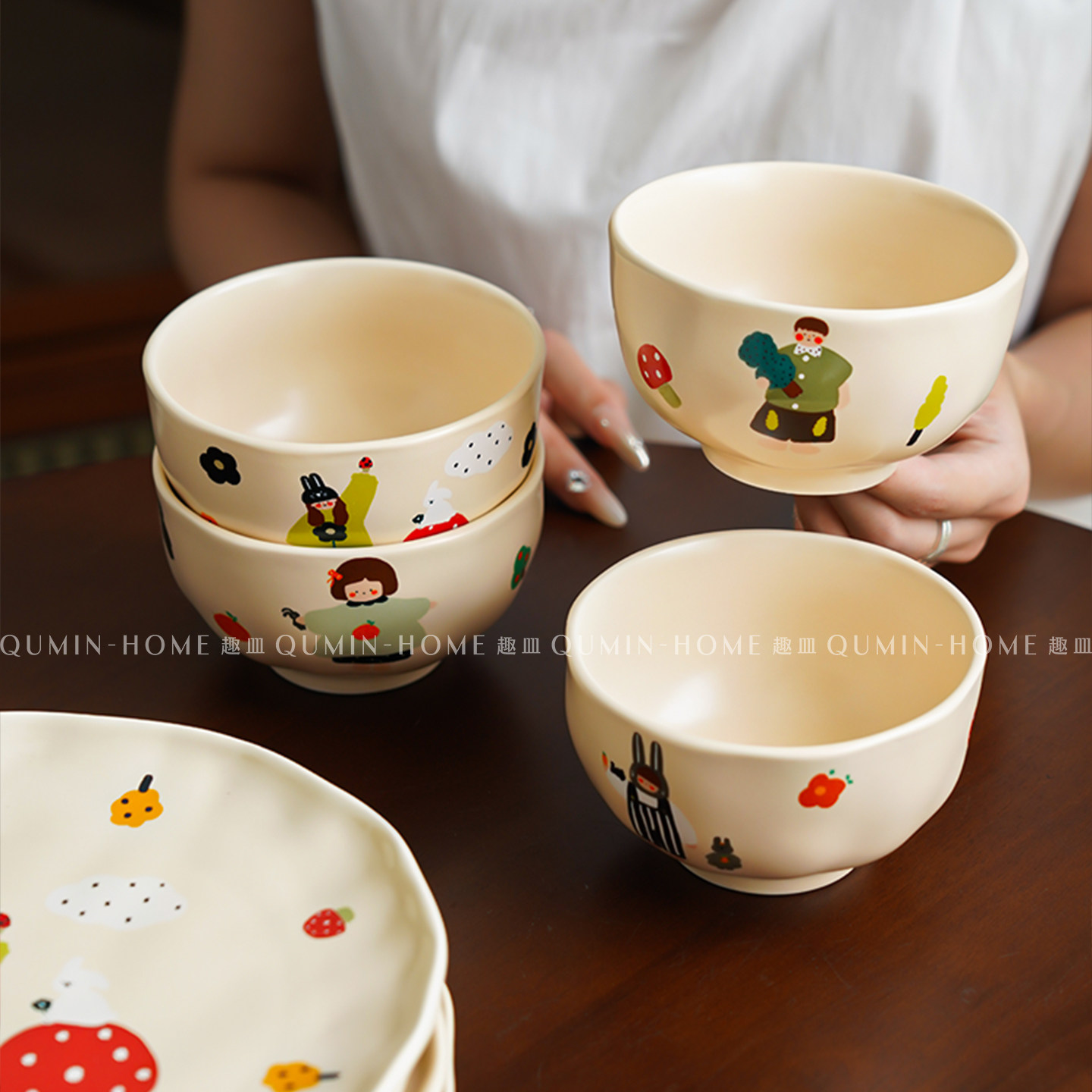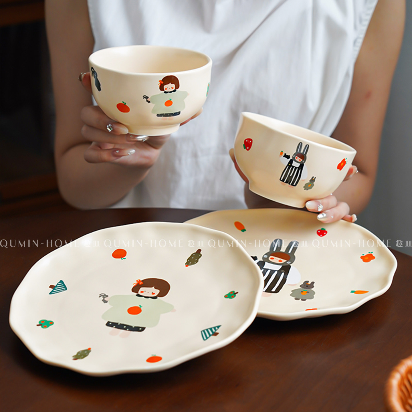 趣皿可爱风卡通餐具瓷器套装一家四口家用亲子餐陶瓷米饭碗菜盘子