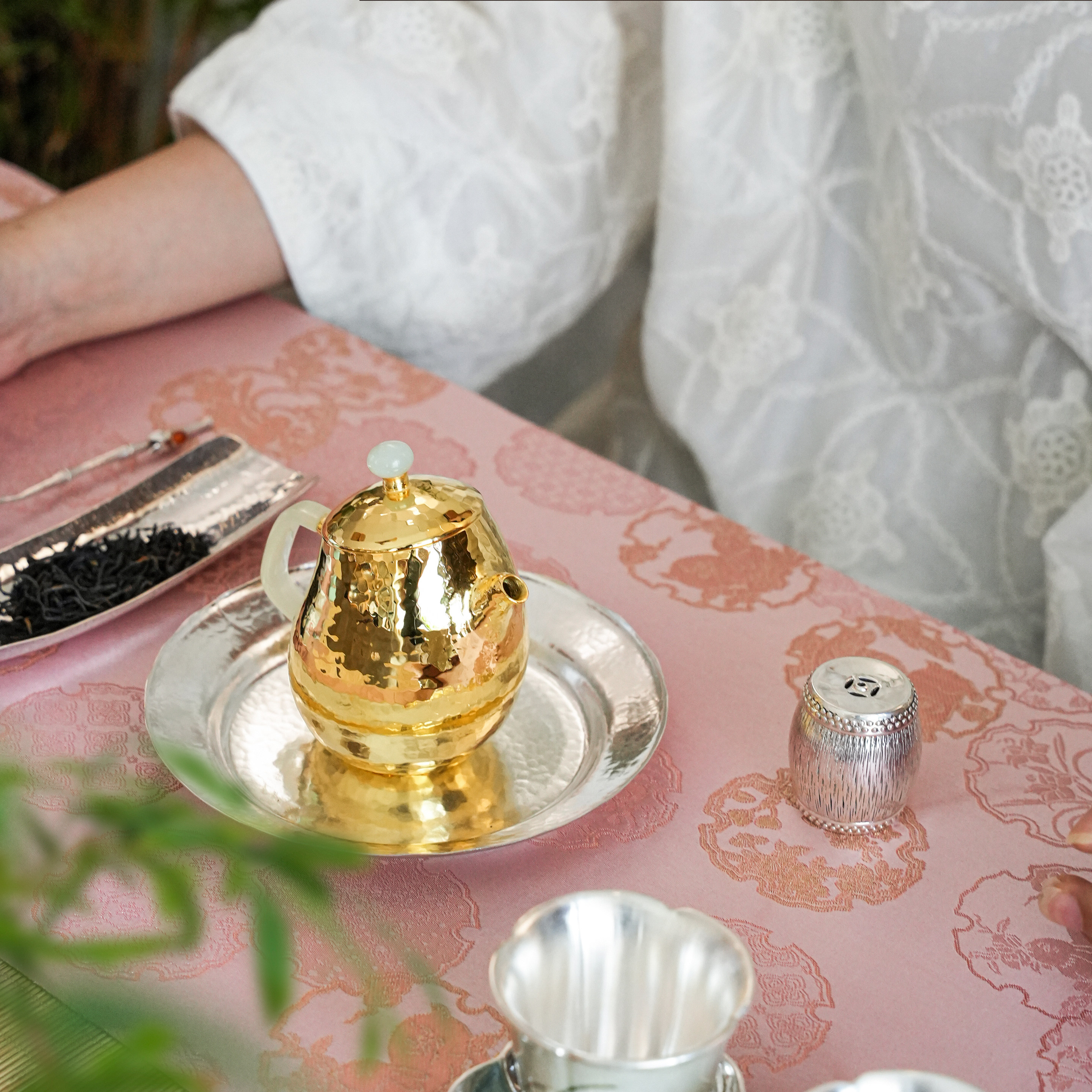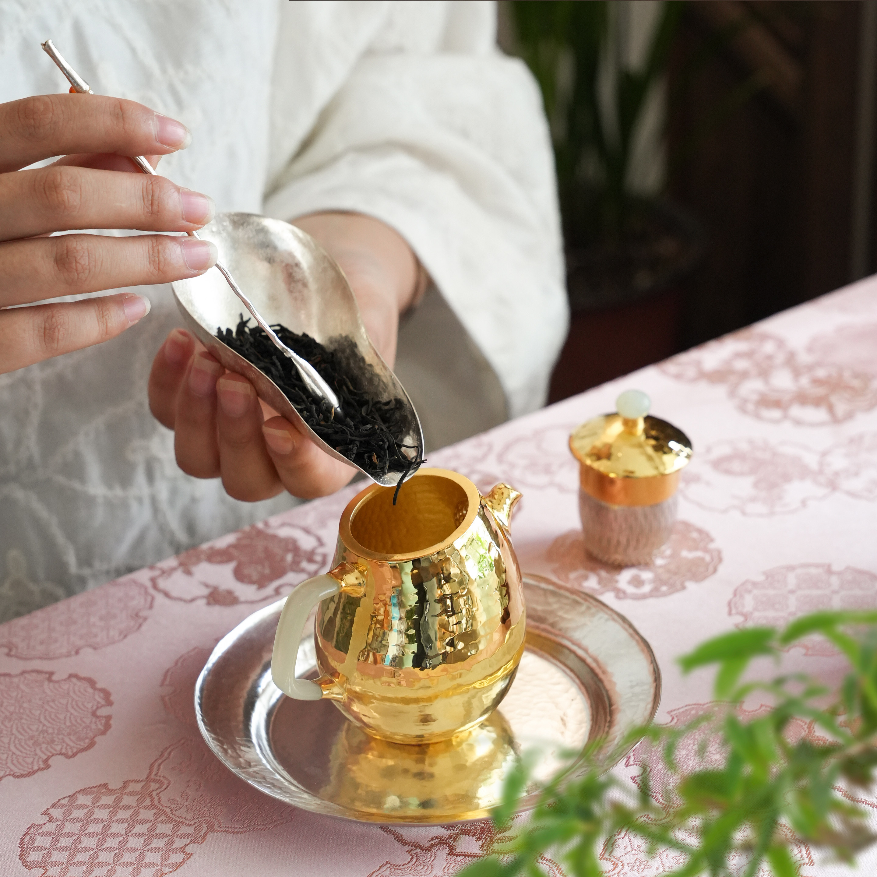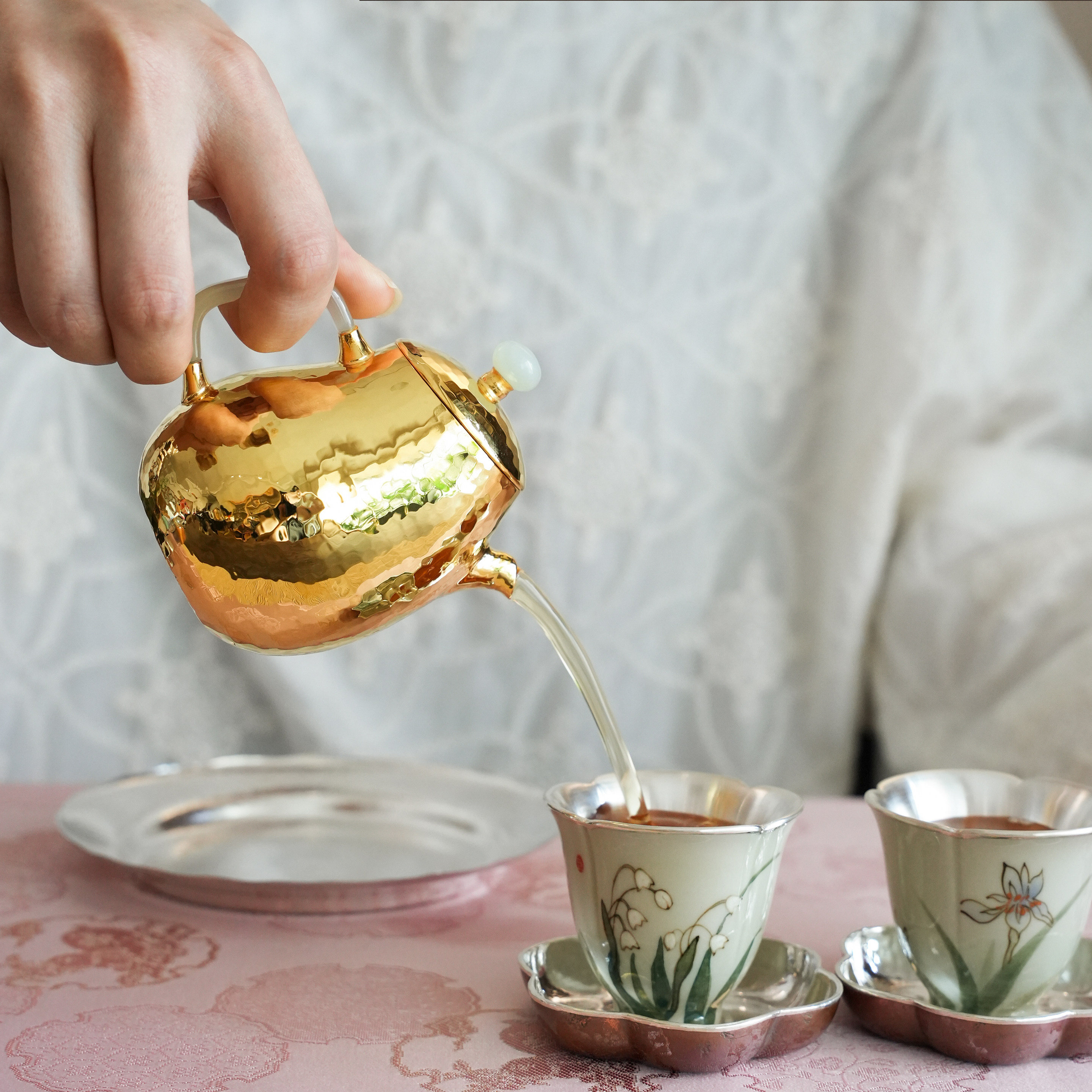 纯银时代傲娇鎏金泡茶壶足银999纯手工一张打玉把精致送礼150ml