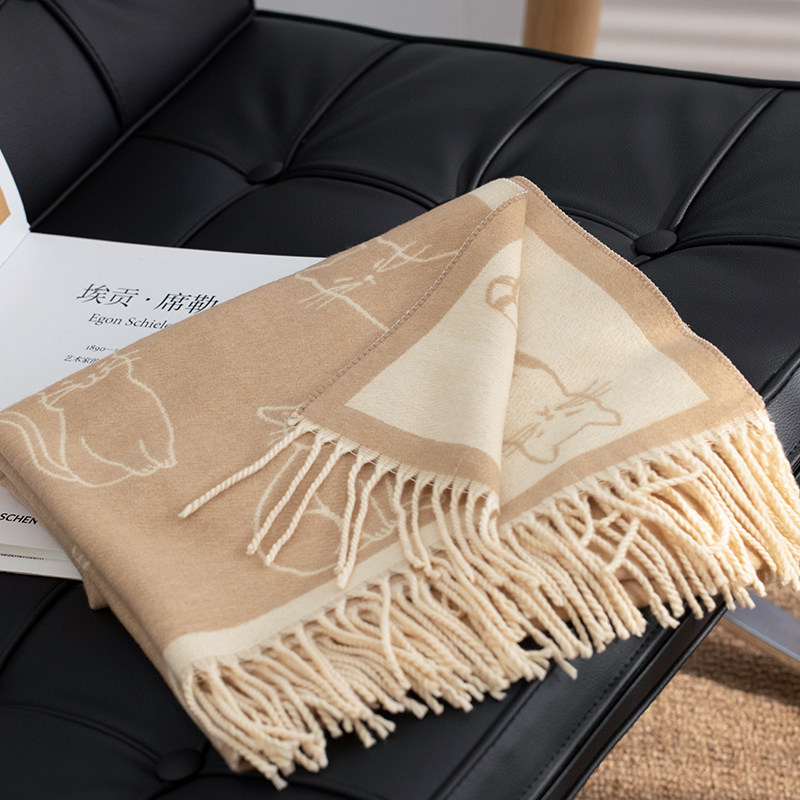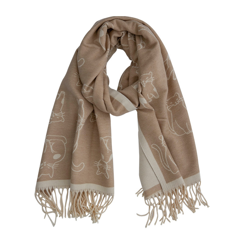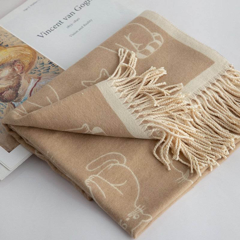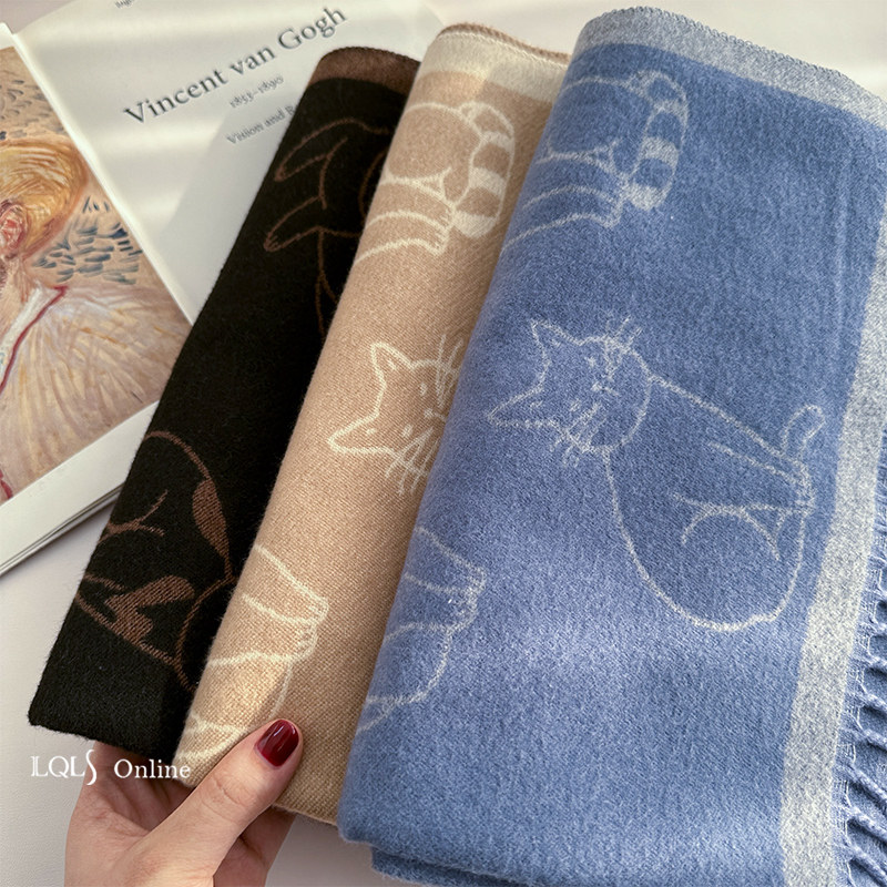 午后慵懒~日系猫咪加厚围巾双面披肩女冬季新款毛毯式百搭可爱风