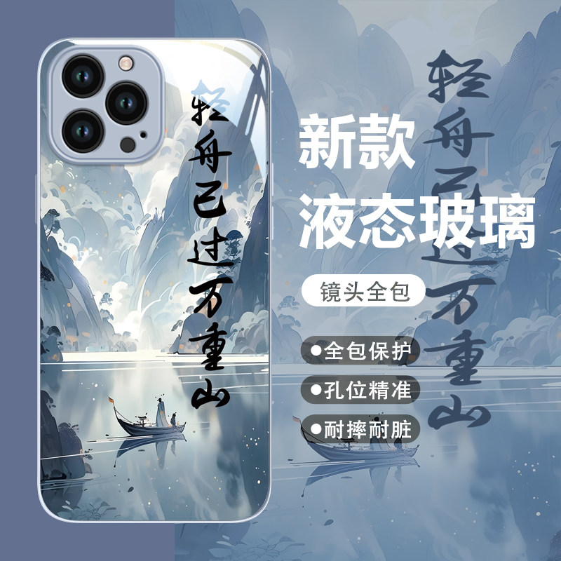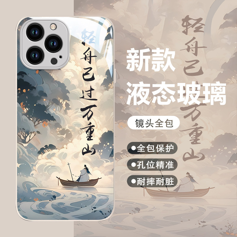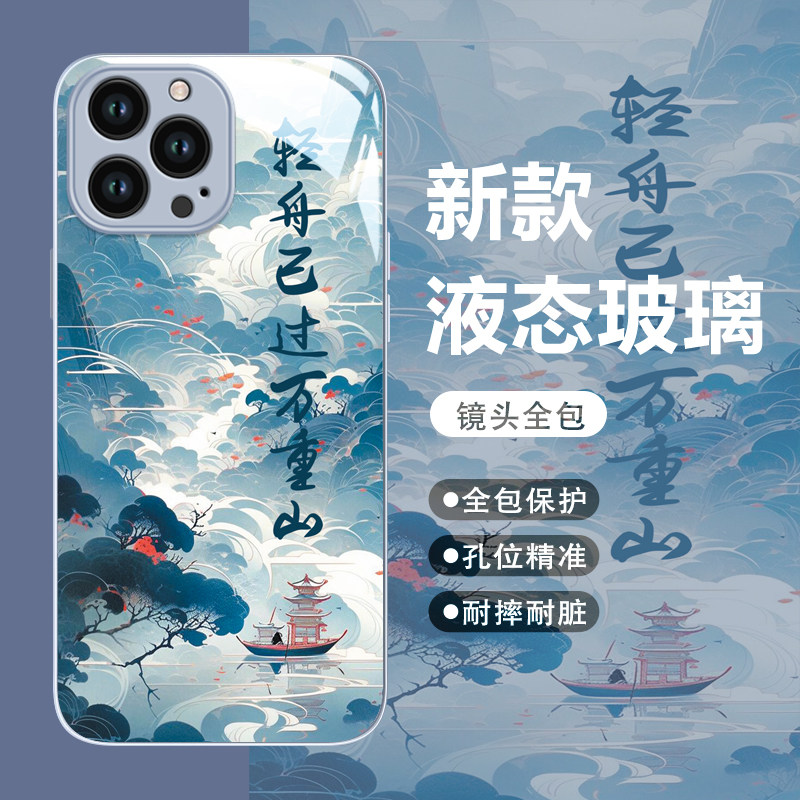 适用苹果15promax手机壳新款iphone14pro中国风mini高级感13/12全包6splus山水画防摔7高级感男女外壳se3/2