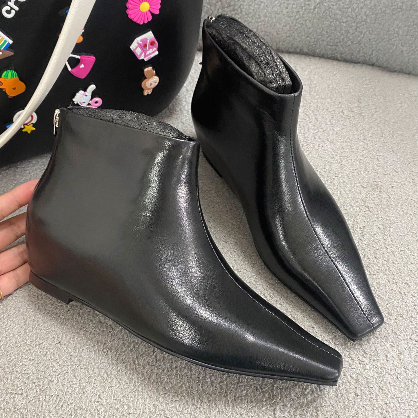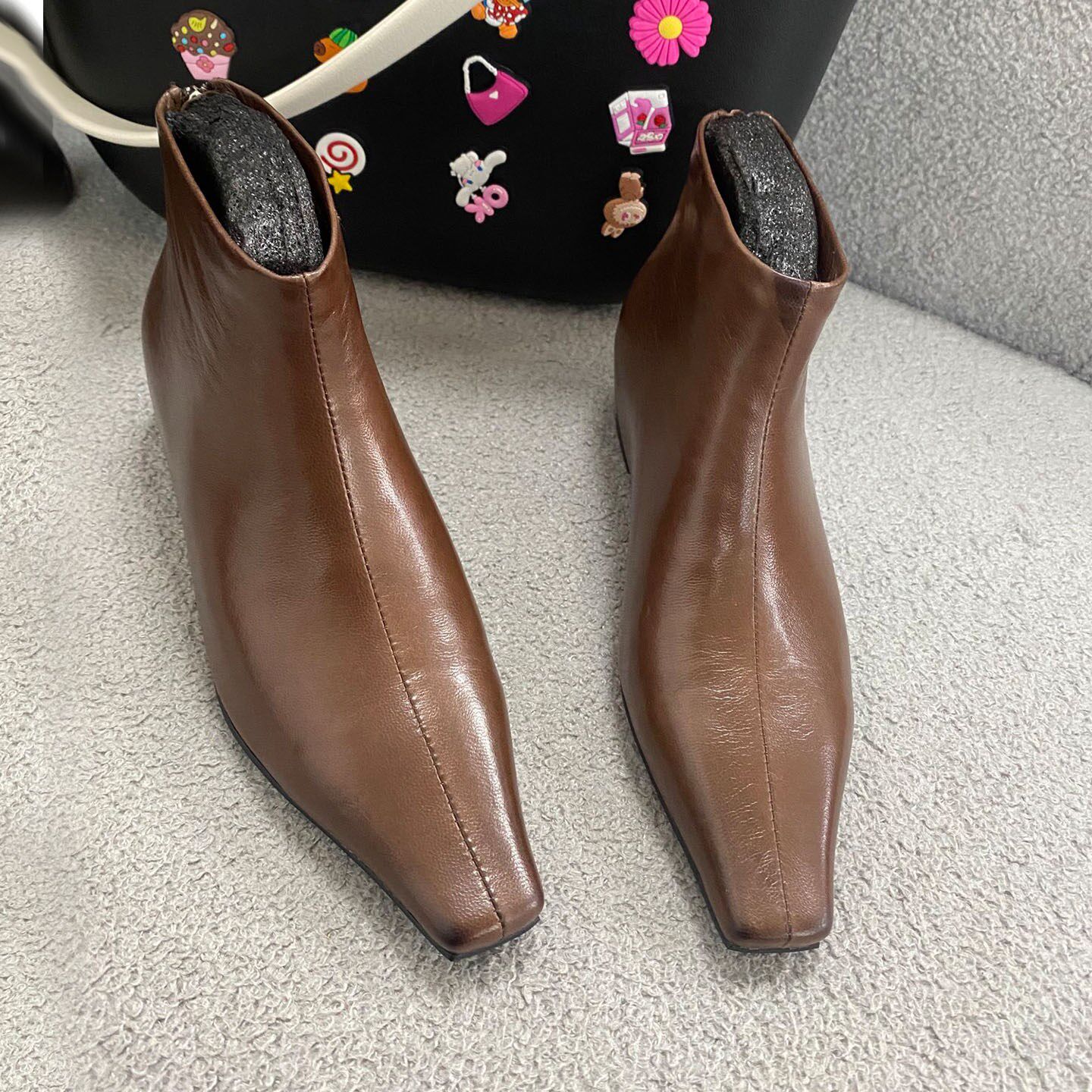 5厘米内增高方头短靴2025新款