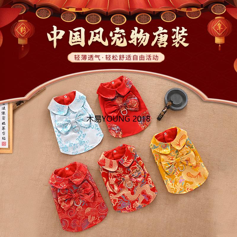 宠物新蛇年衣服宠物唐装春夏薄款狗狗衣服泰迪比熊博美过新年中