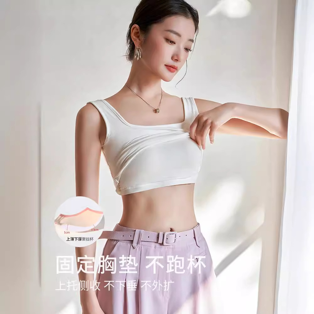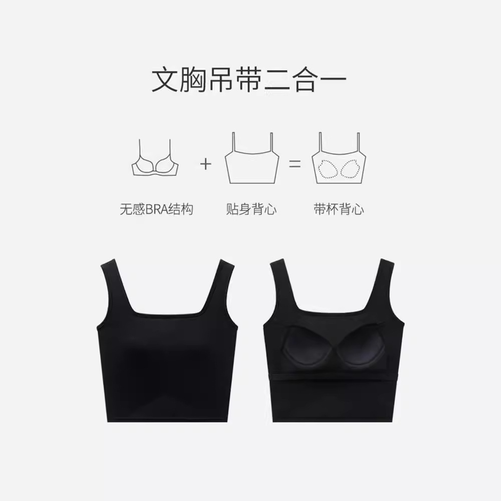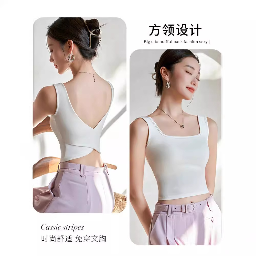 带胸垫背心吊带美背女夏季外穿内搭修身露背性感交叉文胸一体上衣