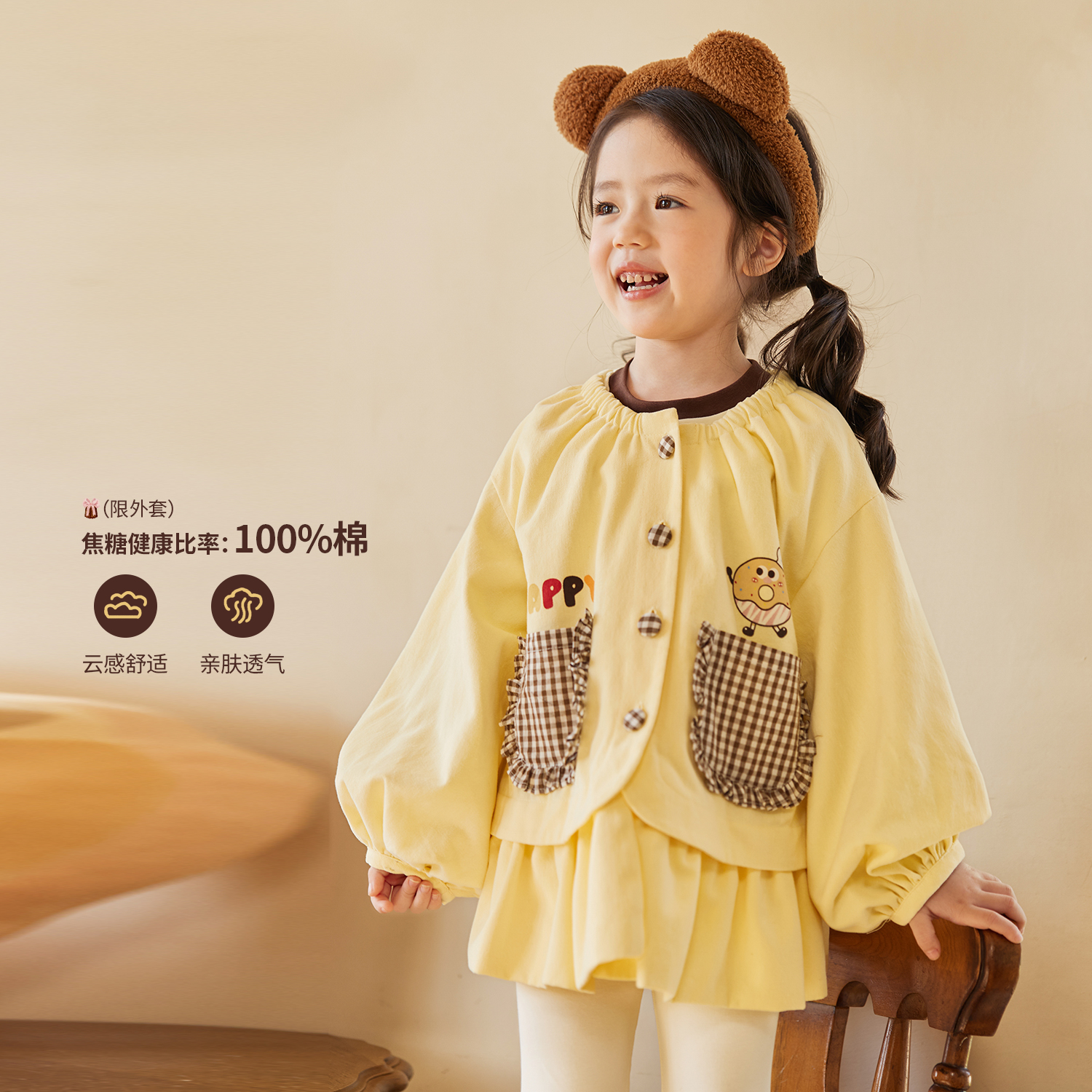 NORNOR童装 女童套装卡通2025秋新款洋气儿童风衣外套宝宝T恤长袖