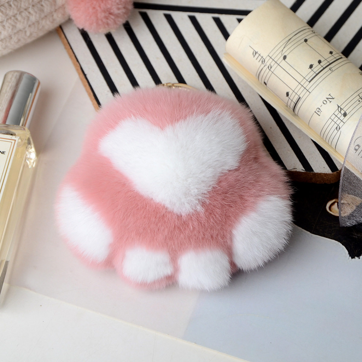 獭兔毛皮草小猫爪毛绒挂件小爪子包包挂饰熊掌钥匙链汽车钥匙扣萌