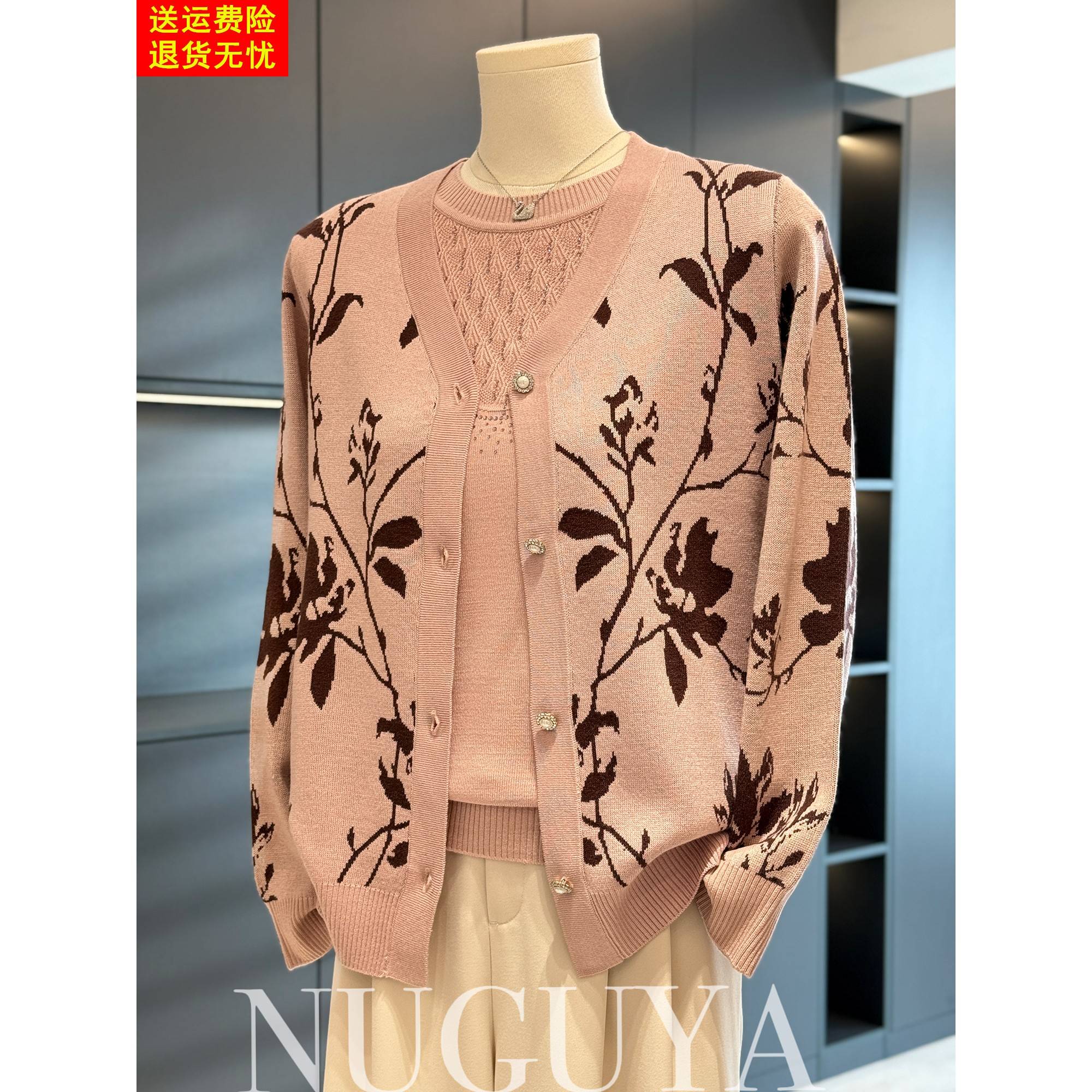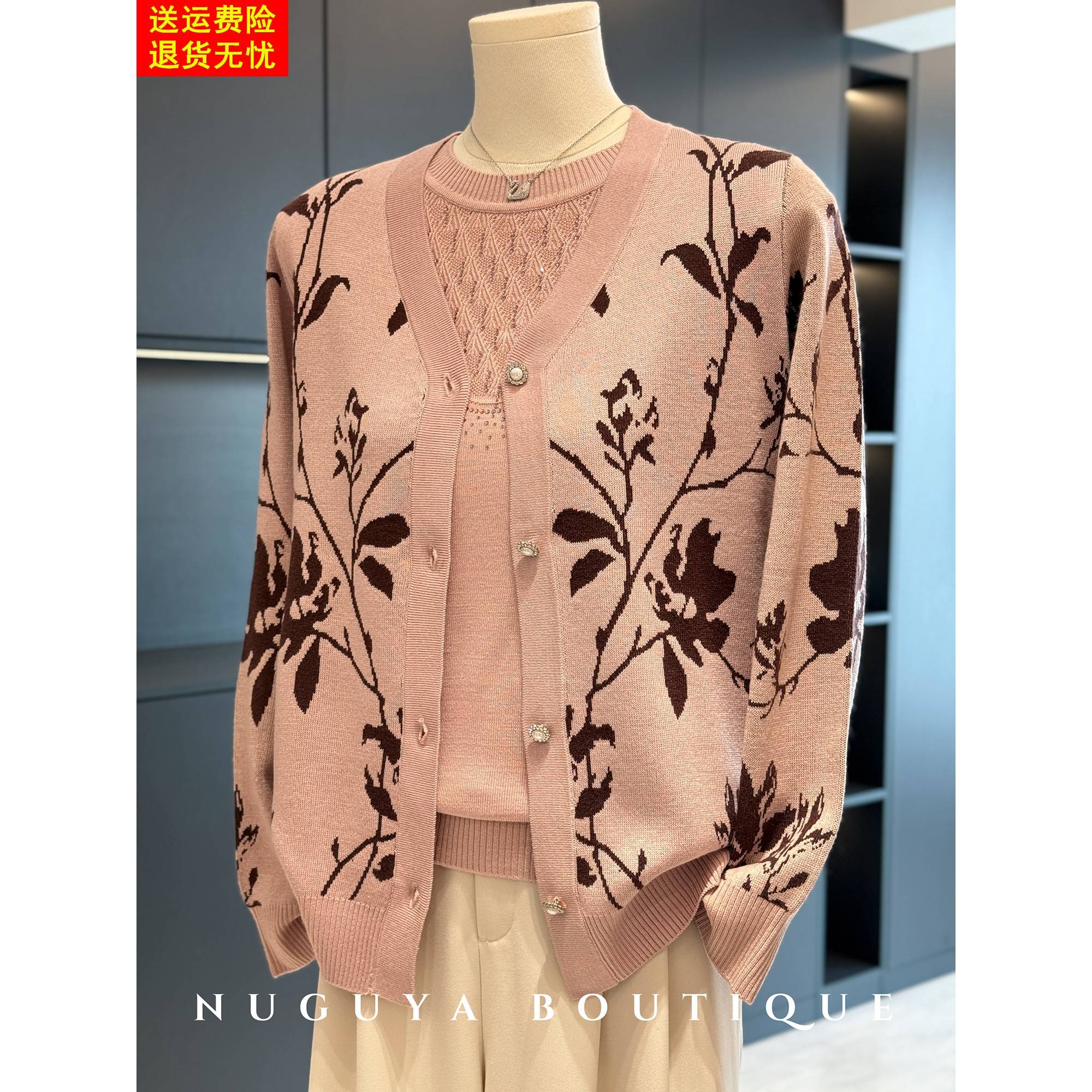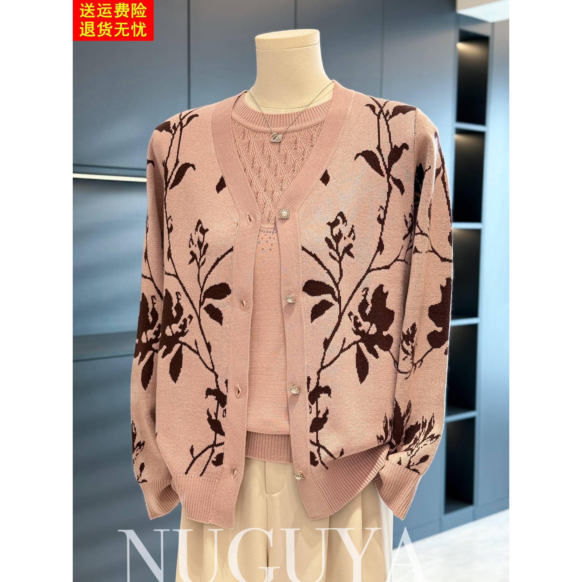中老年人针织衫女开衫两件套时尚休闲春装新款上衣大码妈妈装套装