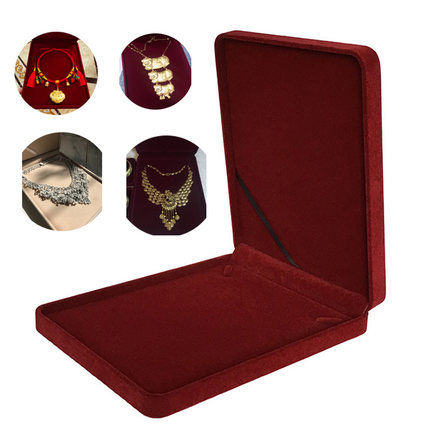 新款高档绒布珠宝首饰包装盒长款珍珠项链盒黄金猪牌礼品包装盒子