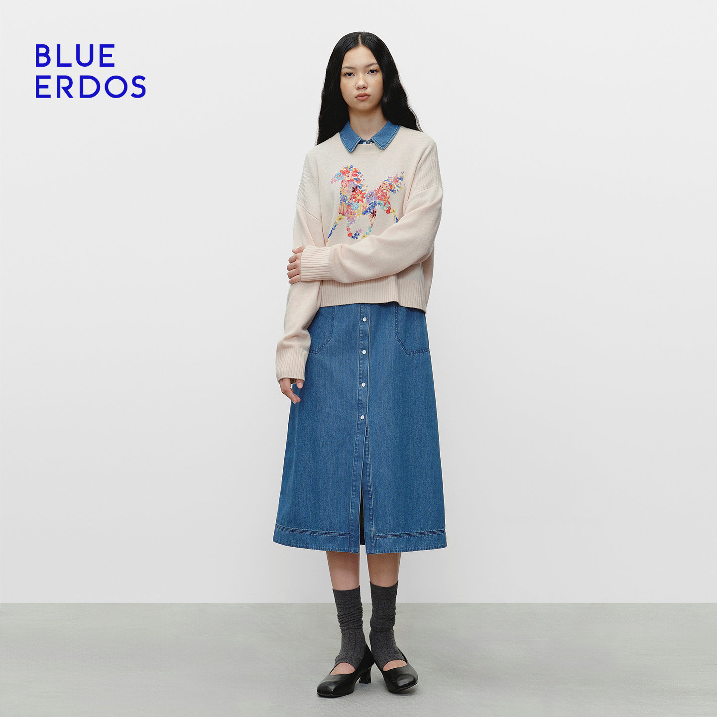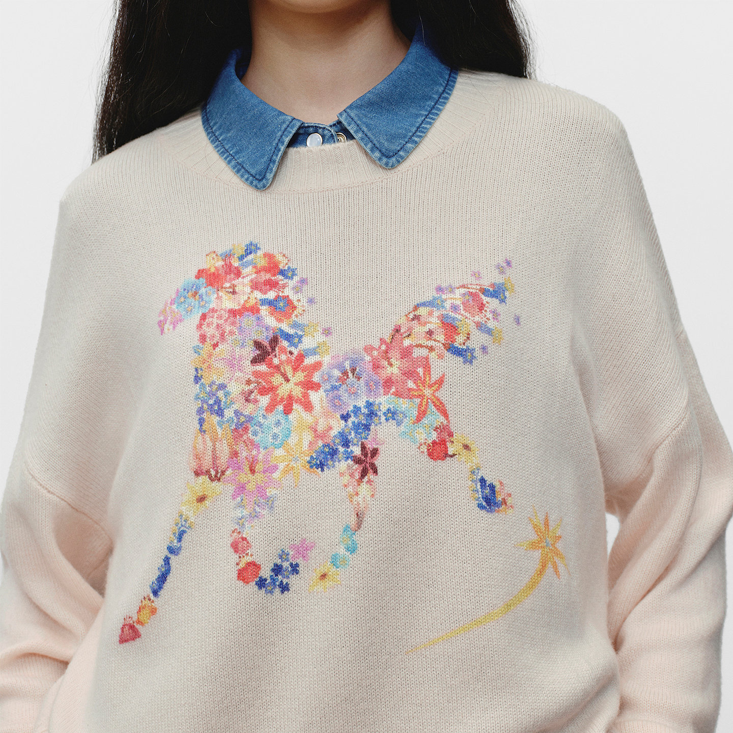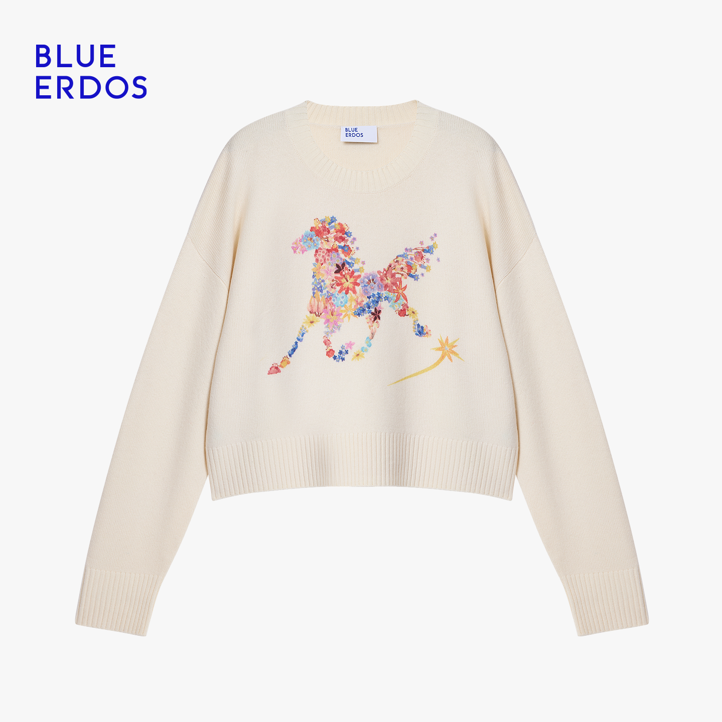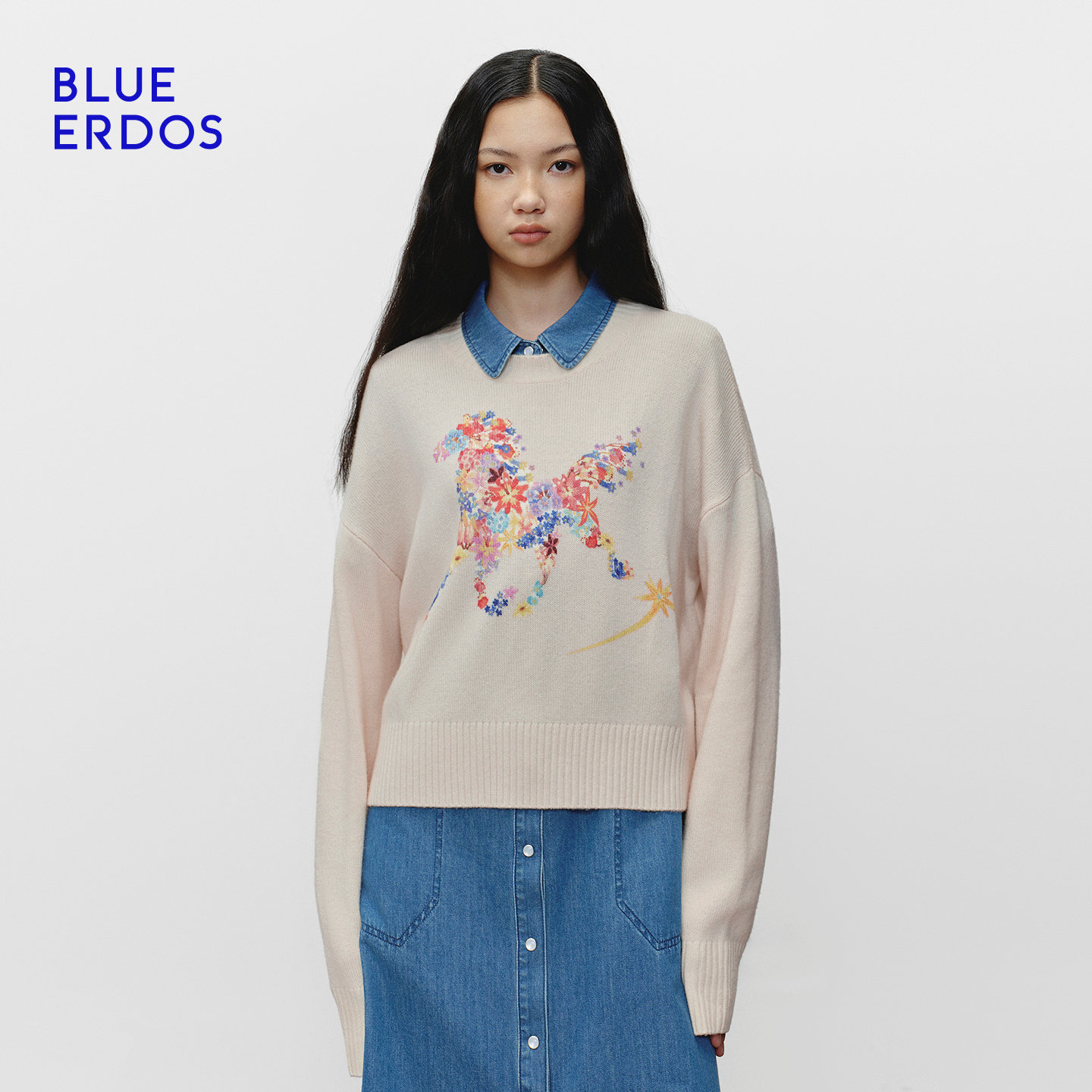 BLUE ERDOS冬季新品休闲百搭马元素印花羊毛羊绒圆领针织衫女