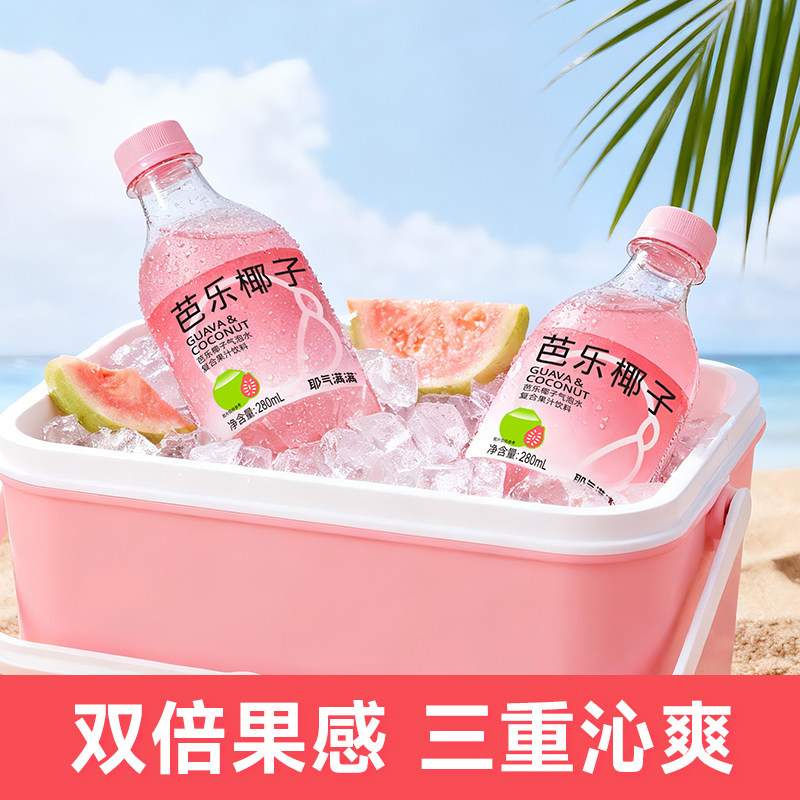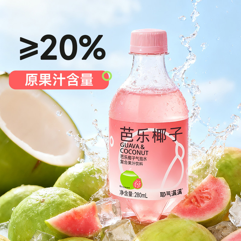 耶气满满芭乐椰子气泡水280ml*10瓶0脂肪红番石榴汁复合果汁饮料