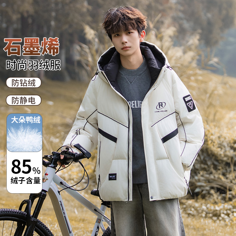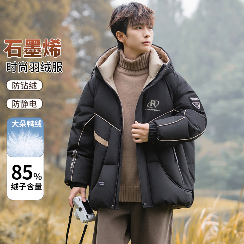 工装羽绒服男款冬季2025连帽石墨烯科技装加厚保暖青少年外套以純