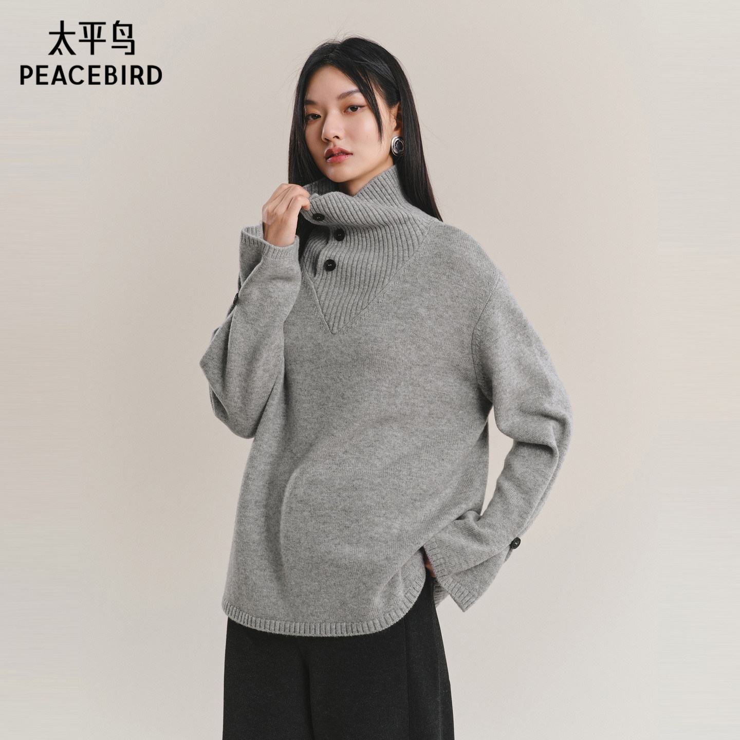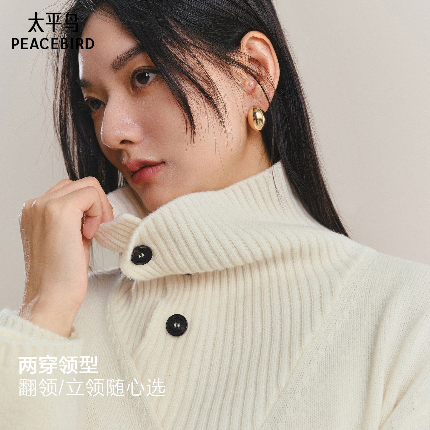 【商场同款】太平鸟 冬新款羊绒混纺竖排扣多领型针织衫A1EEF4443
