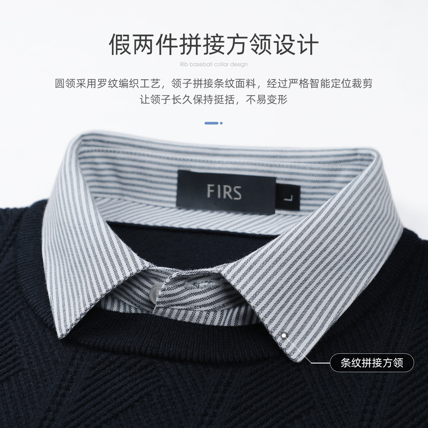 【假两件】杉杉衬衫领毛衣男2025冬季新款条纹肌理商务保暖针织衫