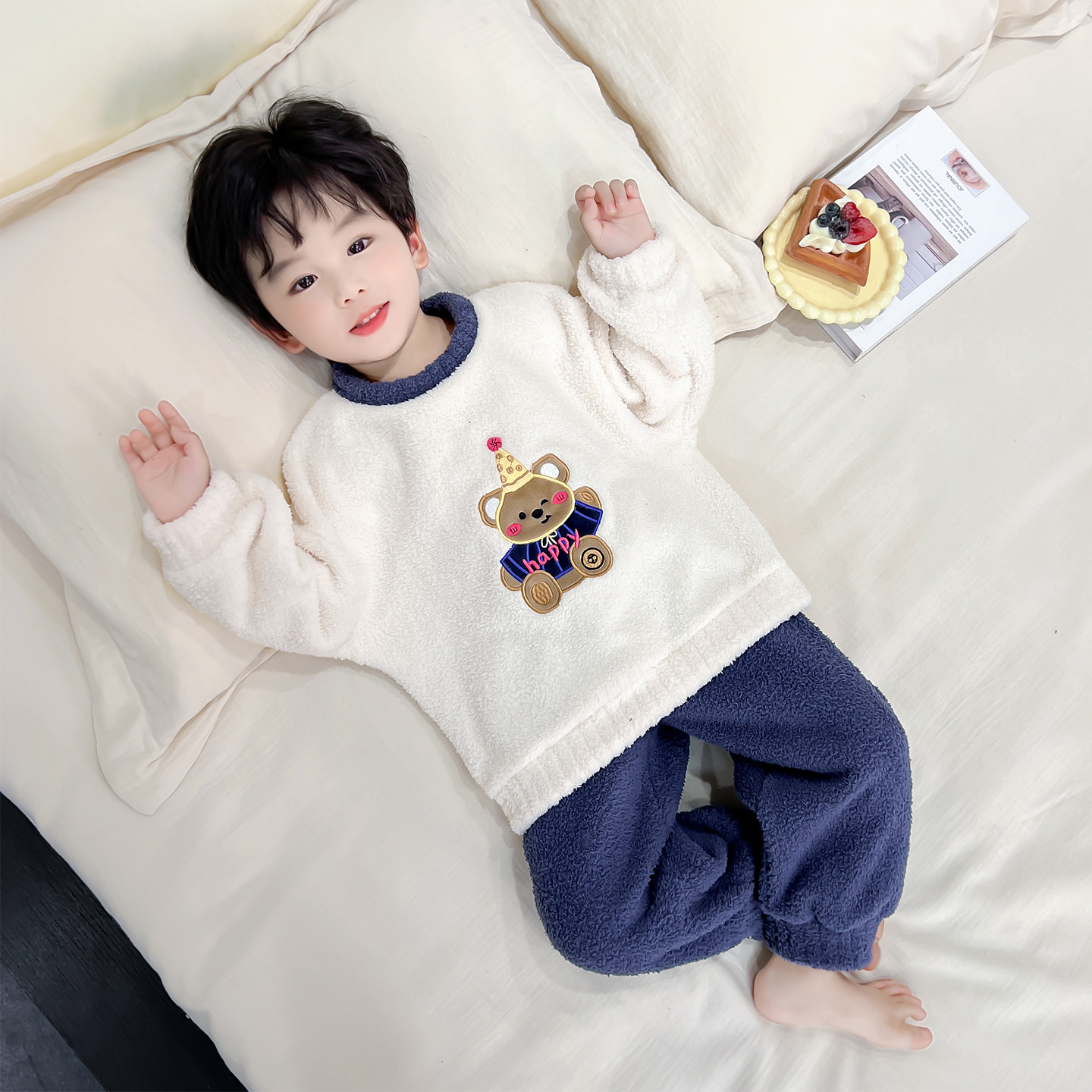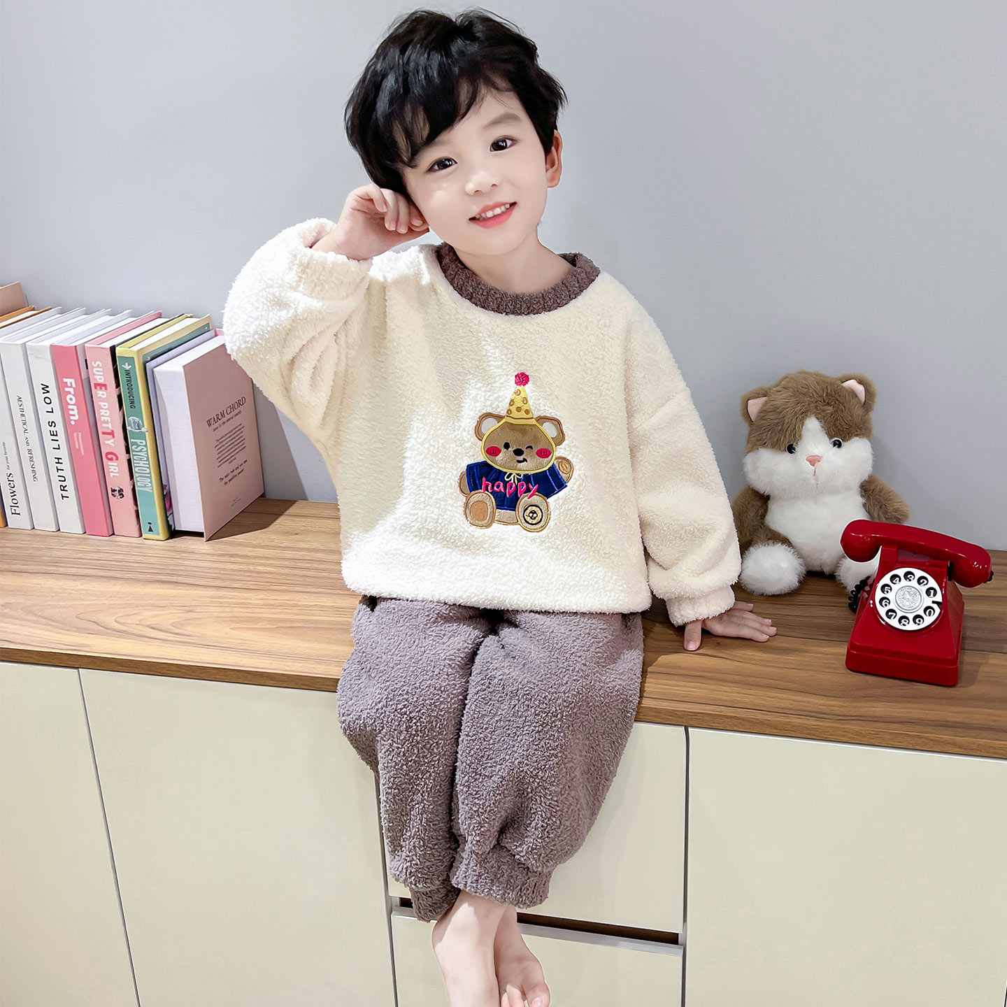 男童睡衣珊瑚绒秋冬款加厚男孩宝宝法兰绒套装冬季儿童长袖家居服