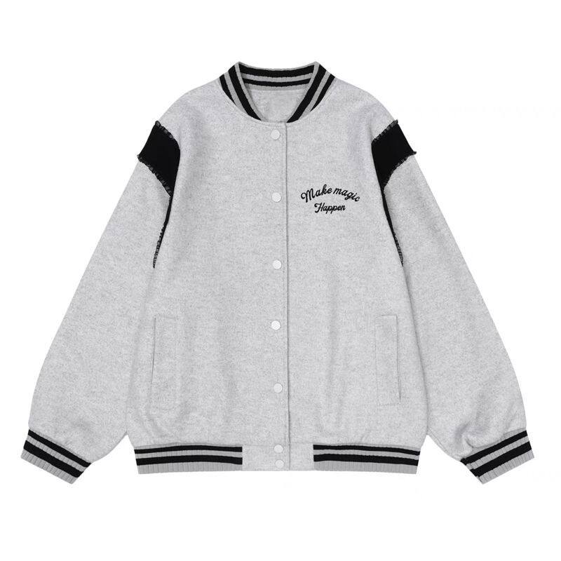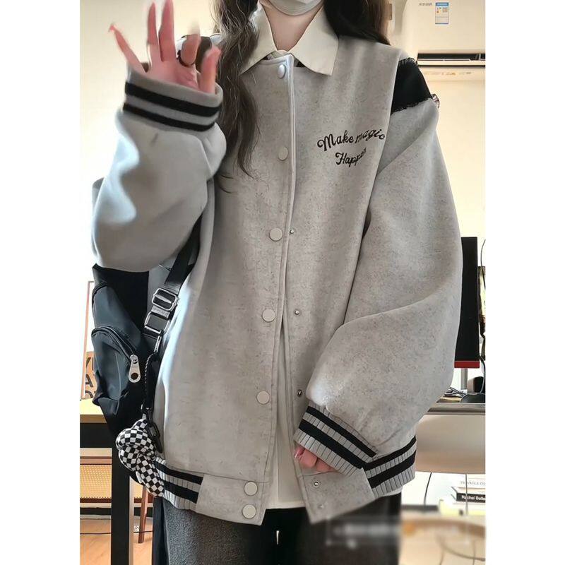 【银狐绒】美式拼接撞色字母刺绣棒球服外套女秋冬款宽松休闲夹克
