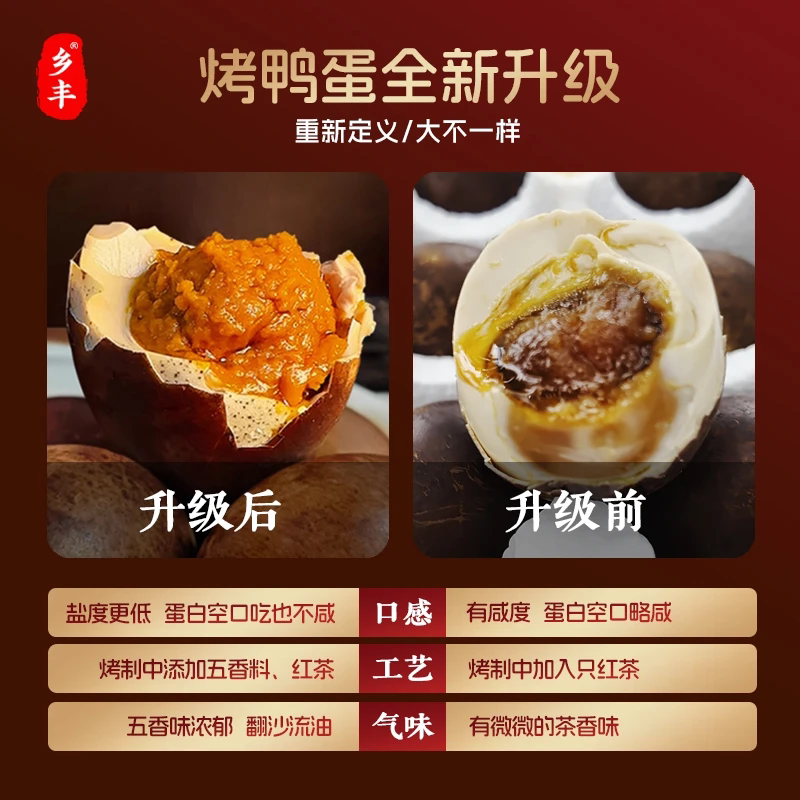 乡丰正宗大号五香烤鸭蛋流油红泥腌制咸蛋适中咸香即食红心咸鸭蛋
