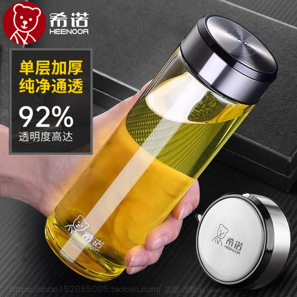 希诺玻璃杯正品男女士泡茶杯便携水杯单层大容量车用加厚透明杯子